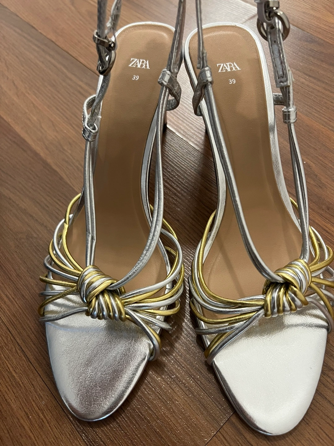 New Zara Silver and Gold Knotted Sandals
