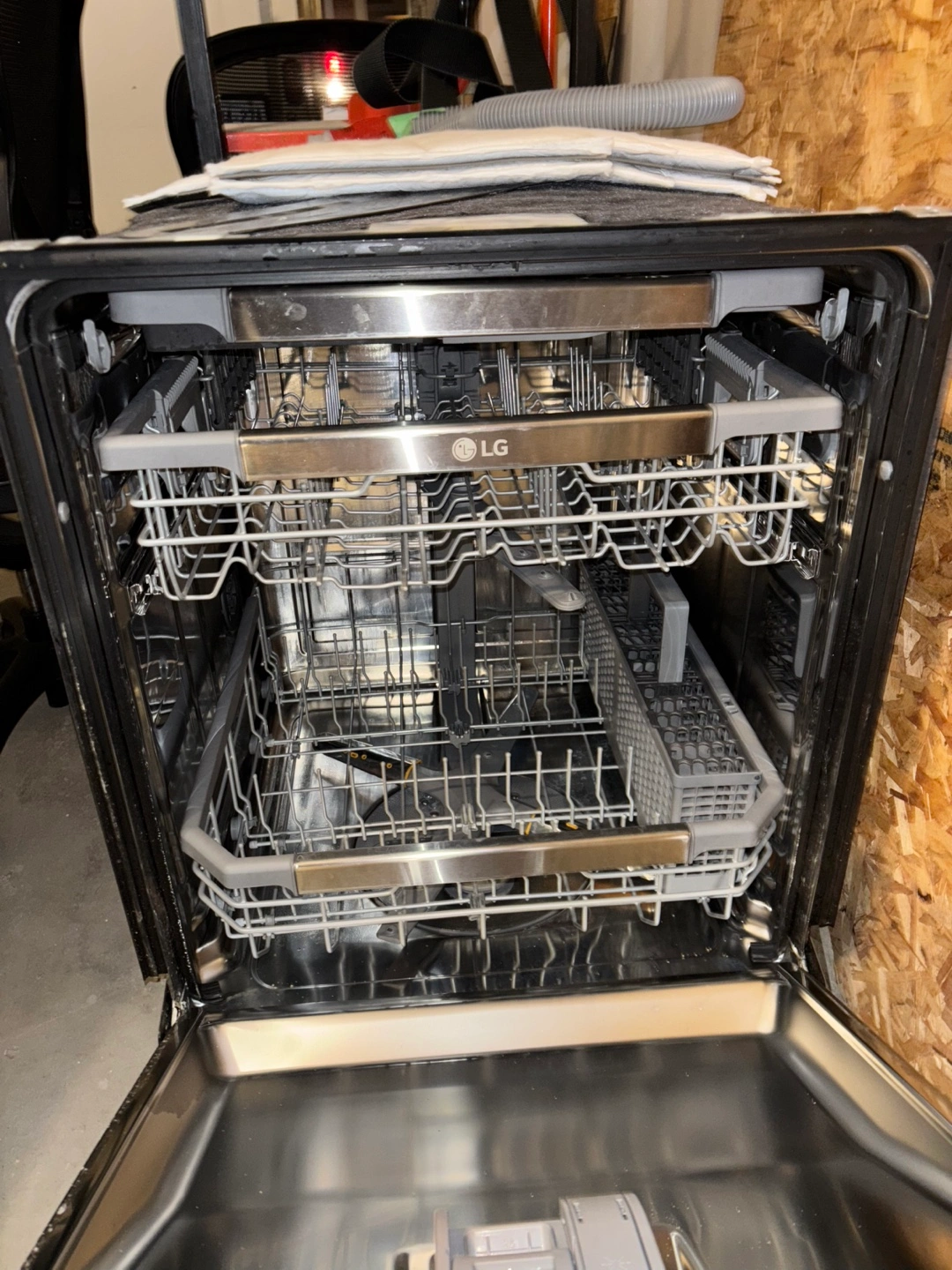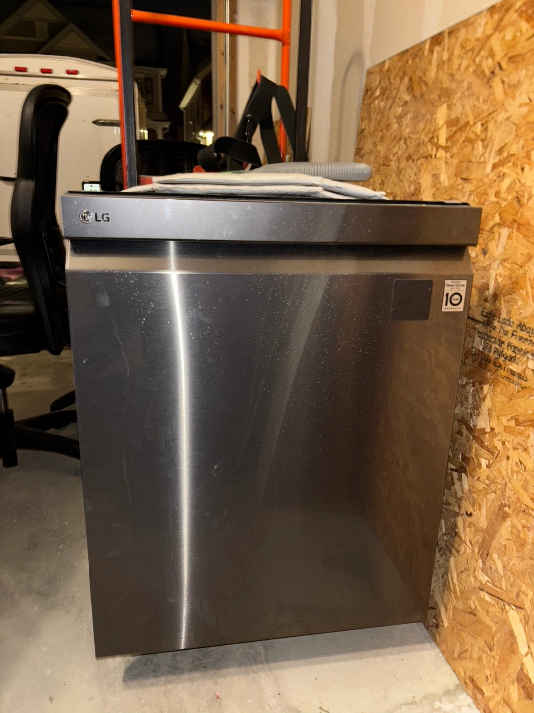 Stainless steel dishwasher. Features Inverter Direct Drive motor and Smart Diagnosis. The steel water supply hose and drain and two racks are included. Pick up in Tottenham. Priced well to sell fast!