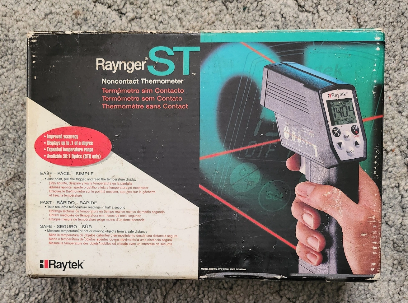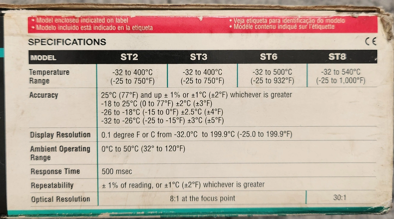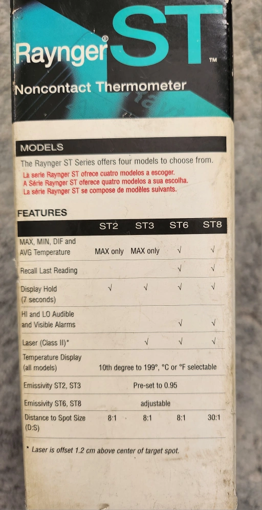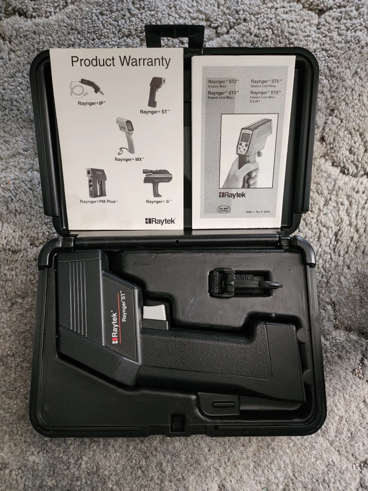 26Raytek Raynger ST series non-contact thermometer. Includes hard carrying case and instruction manual.