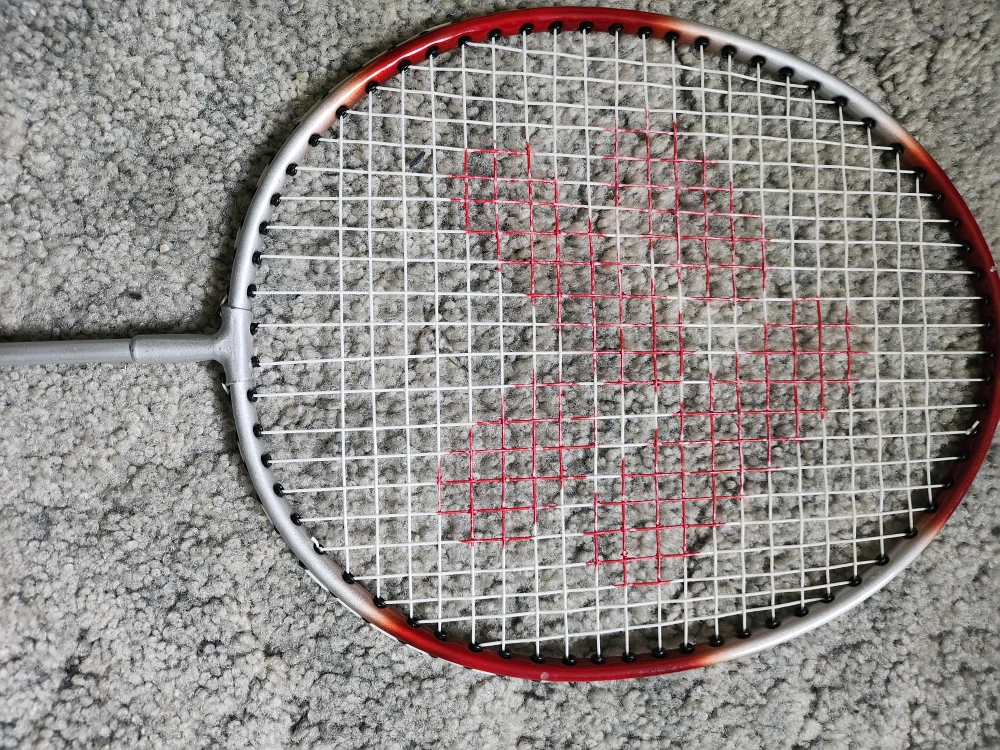 26Used badminton racquet. Red and silver colour scheme. Includes protective case.
