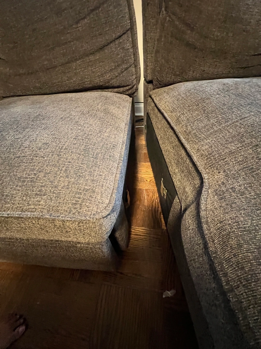 • Plush, dark grey fabric upholstery
