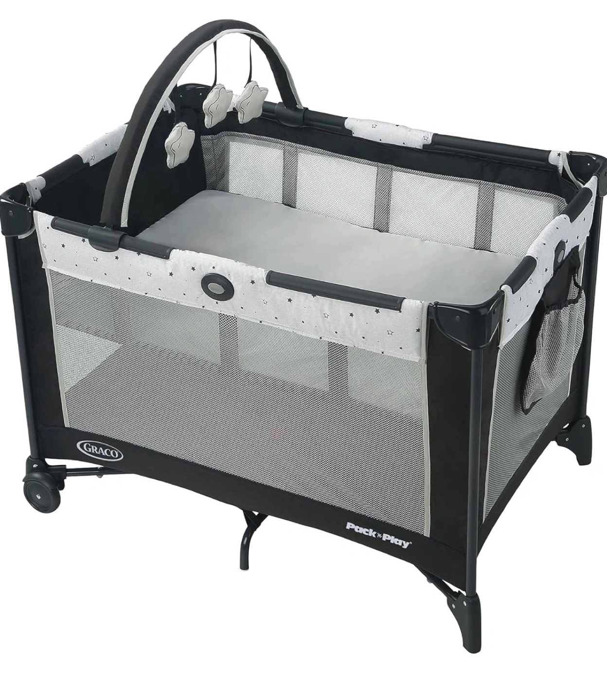 Graco pack ‘n’ play, used twice but the little one wasn’t a fan. Does not come with bassinet.