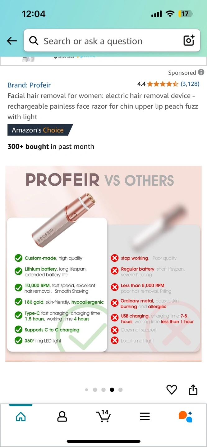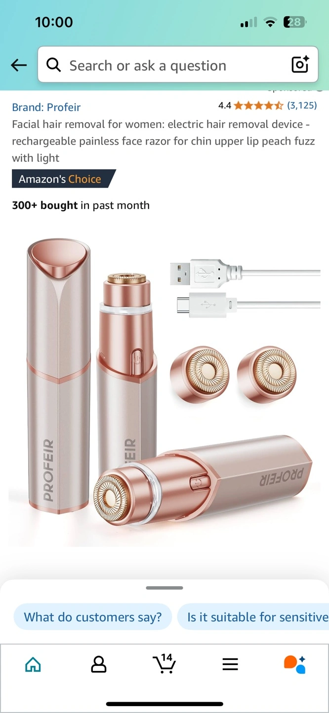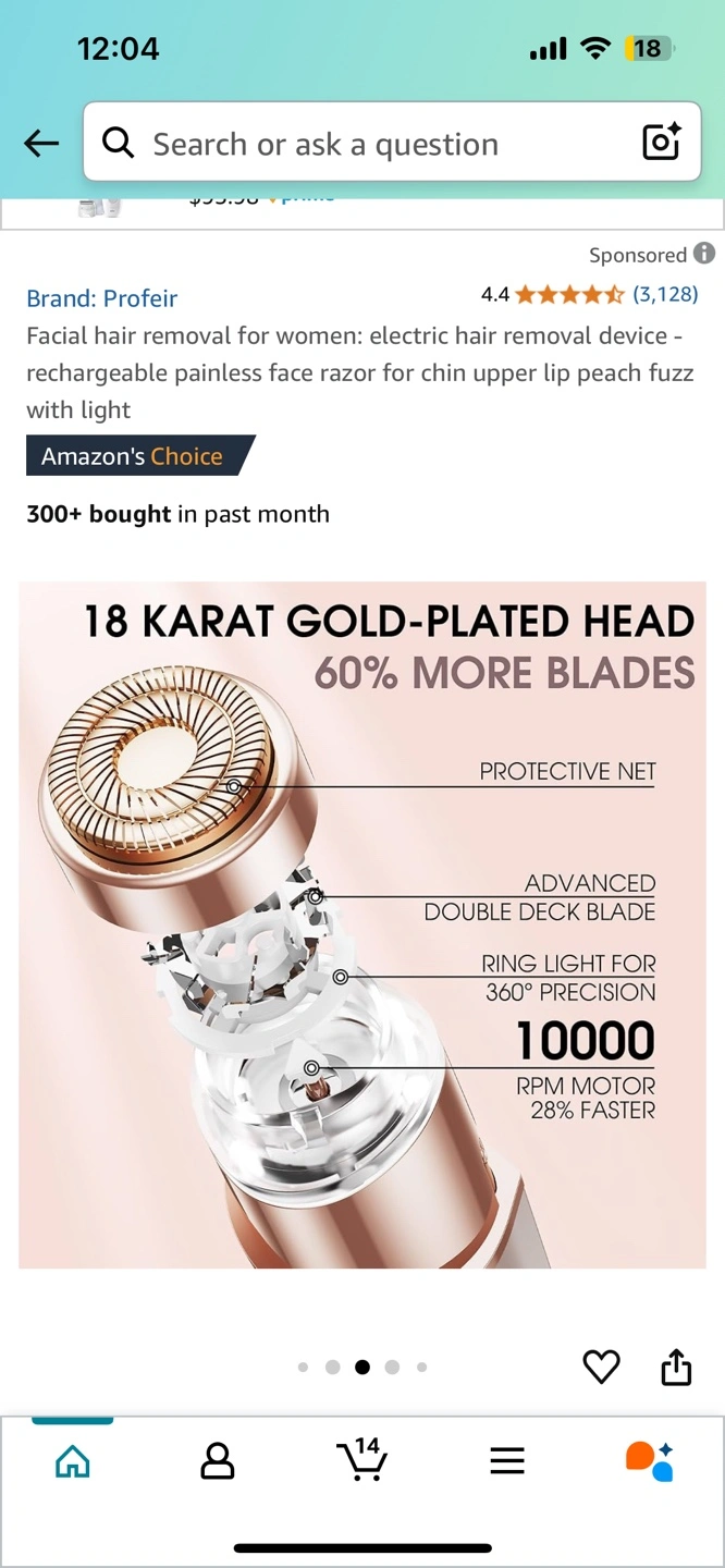 98New in sealed box never opened. Rose gold electric facial hair remover. Painless device for chin, upper lip, and peach fuzz. Includes light and USB charging cable. 18 karat gold-plated head with 60% more blades.