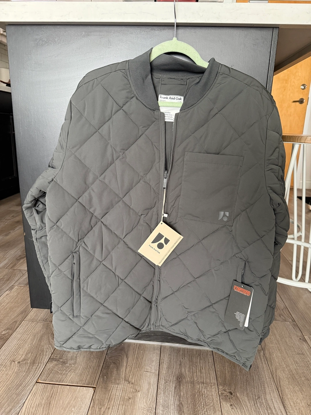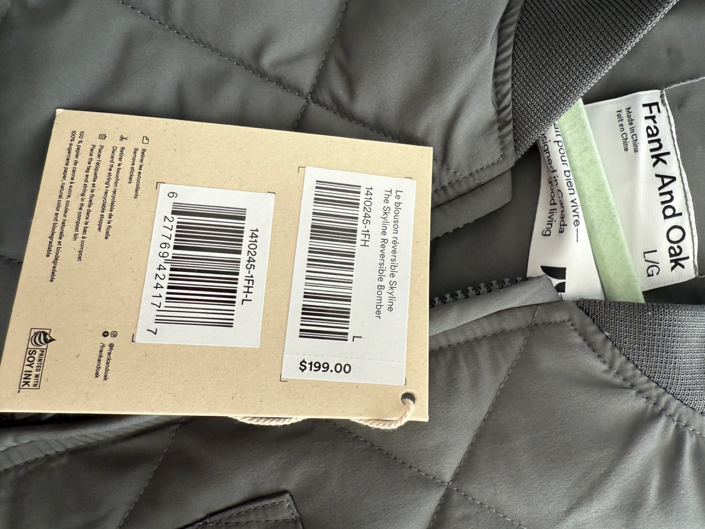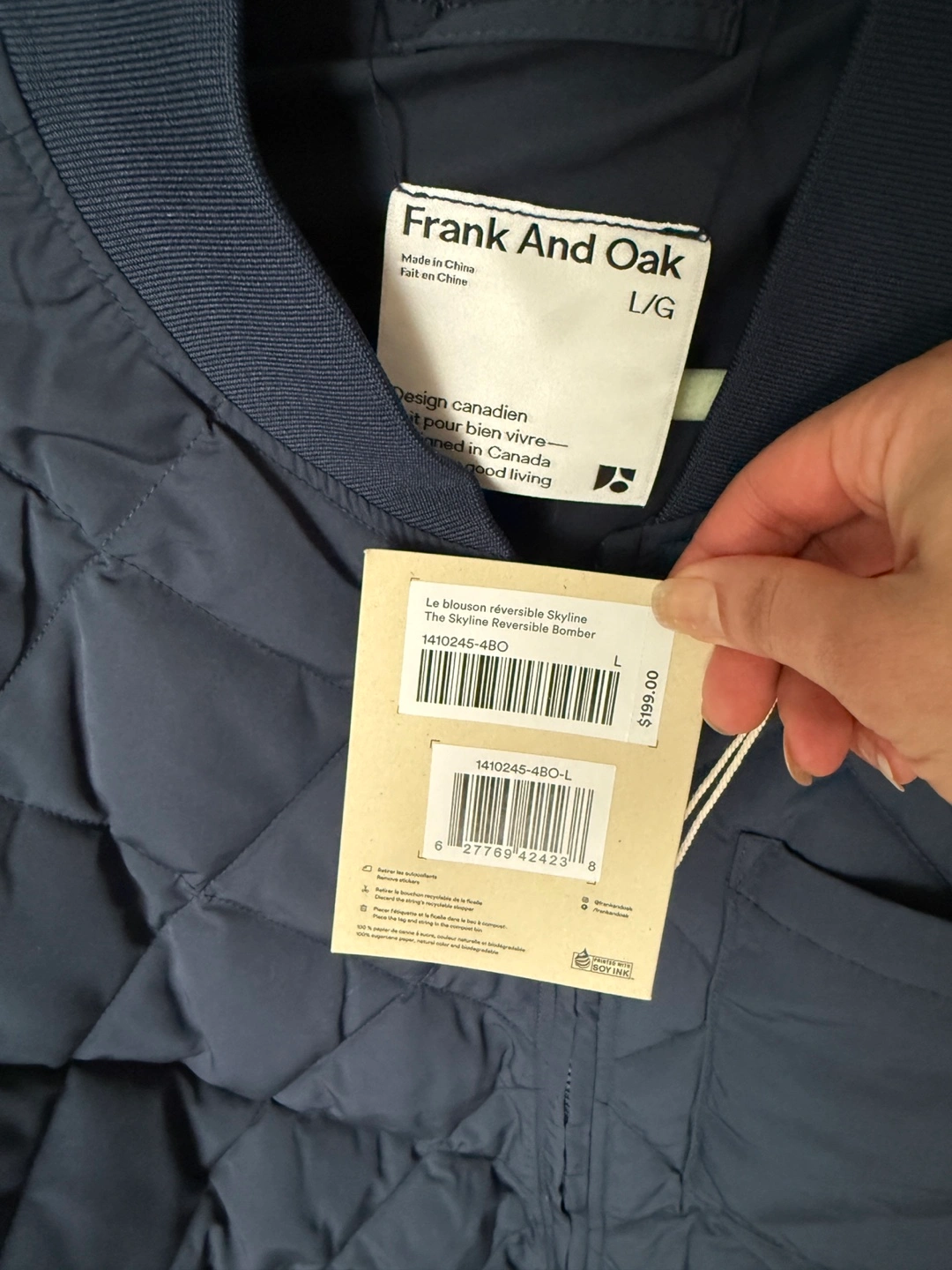 New, with tags Frank and Oak men’s reversible bomber jackets.