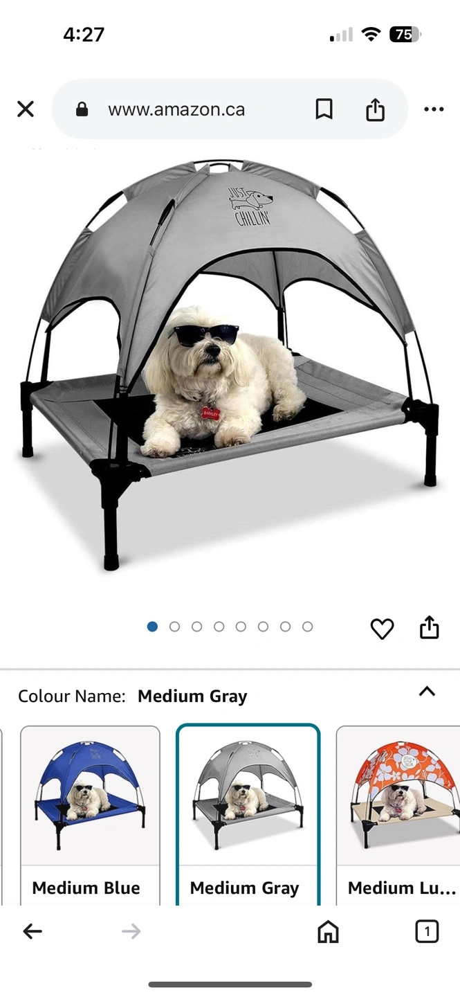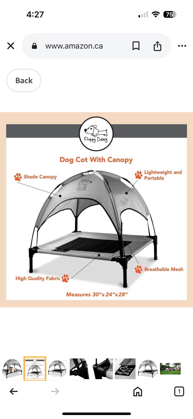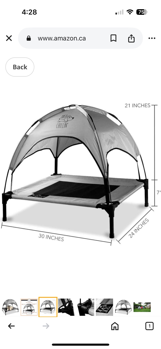 New in open box raised dog bed with canopy. Grey. 30” by 24” by 7 “. Good for small and medium size dogs. Retails for over 50 on amazon. Price is firm as it is brand new. Cash only.