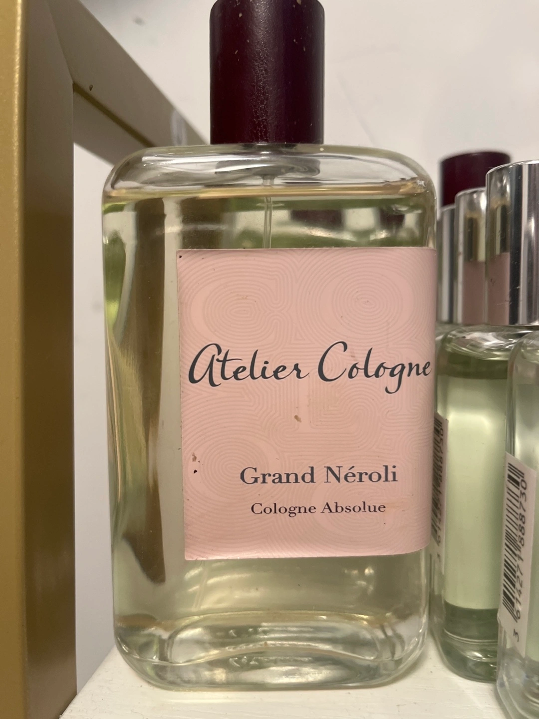 Atelier Cologne Grand Néroli Cologne Absolue. Clear glass bottle, dark reddish-brown cap. Cologne Absolue.