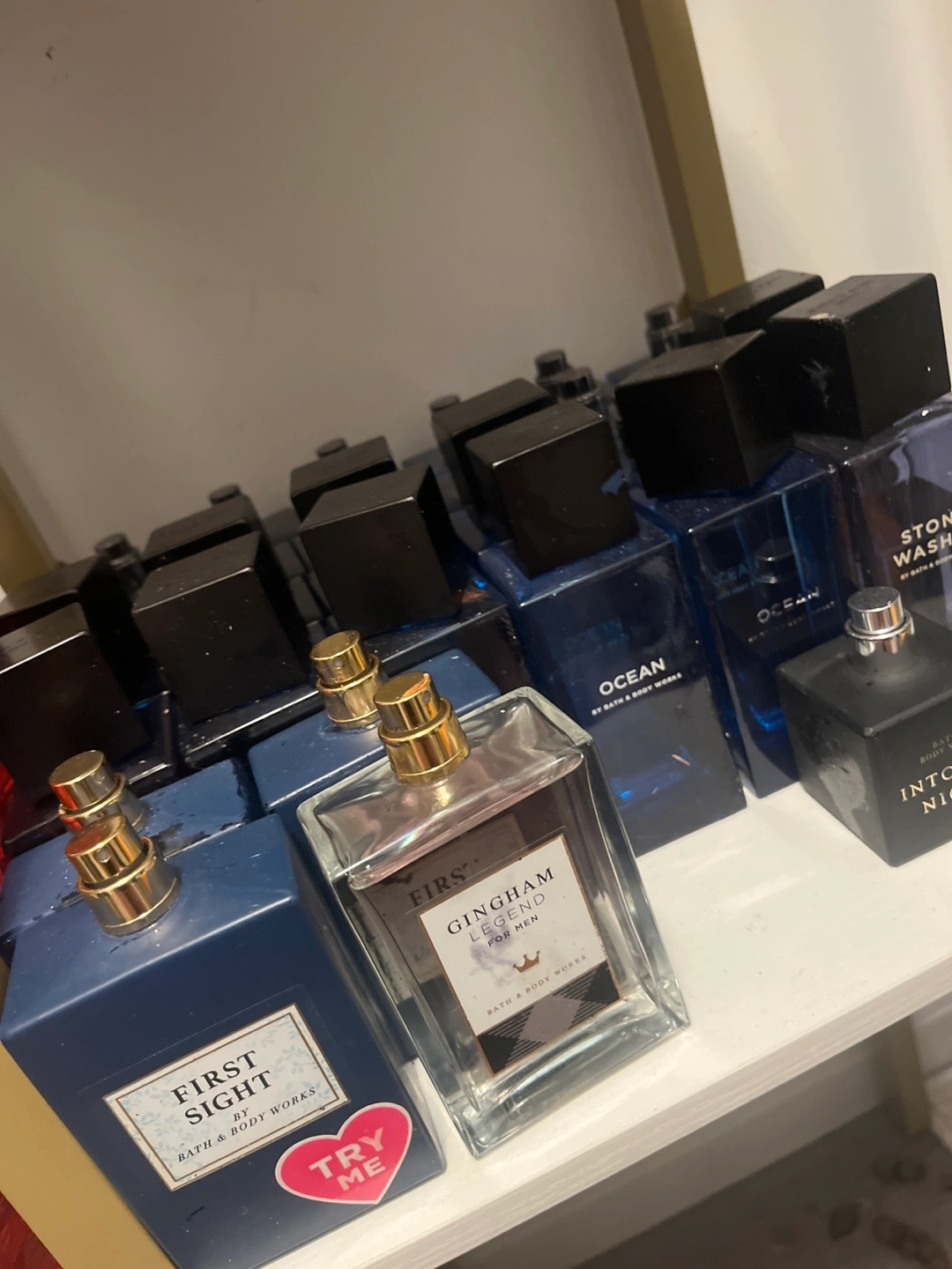 Collection of Bath & Body Works men's fragrances. Includes First Sight, Gingham Legend, and Ocean scents. Various sizes available. $15 each bottle