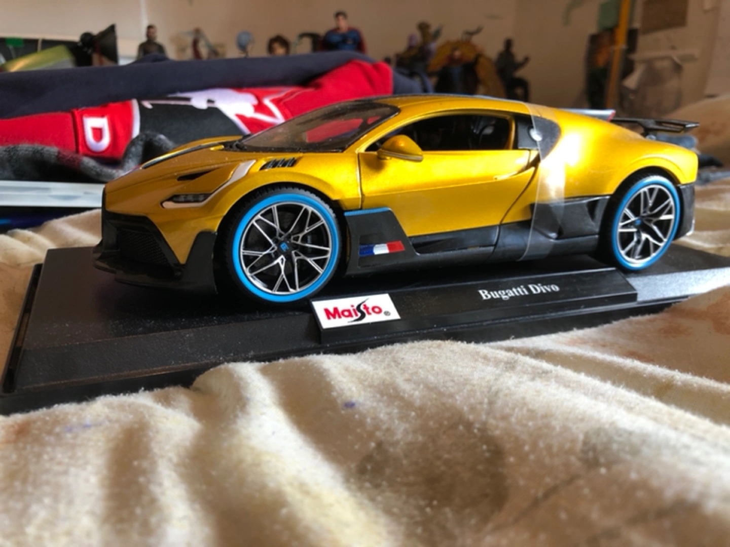 Gold Bugatti Divo collectible model car. Comes on display stand. Detailed model, looks great.