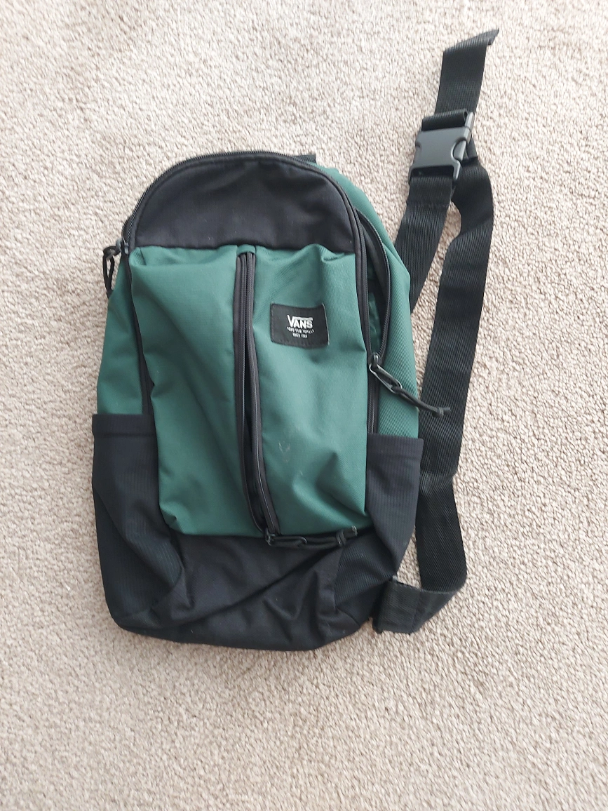 919Green and black crossbody bag. Multiple pockets. Adjustable strap. Good for everyday use. π