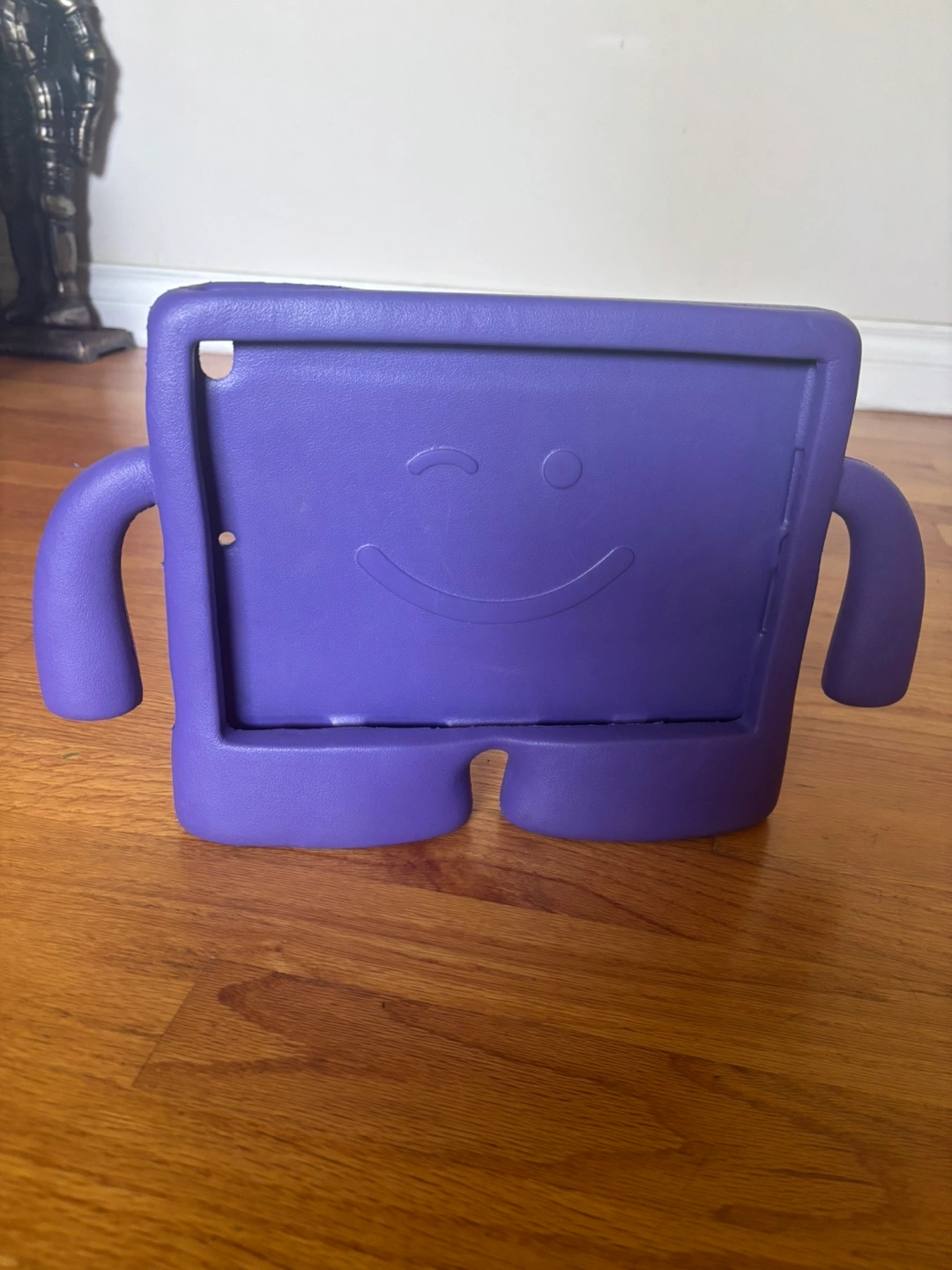 Durable protective case. Fun design. Suitable for children. Features a smiling face. Lightweight and easy to grip.