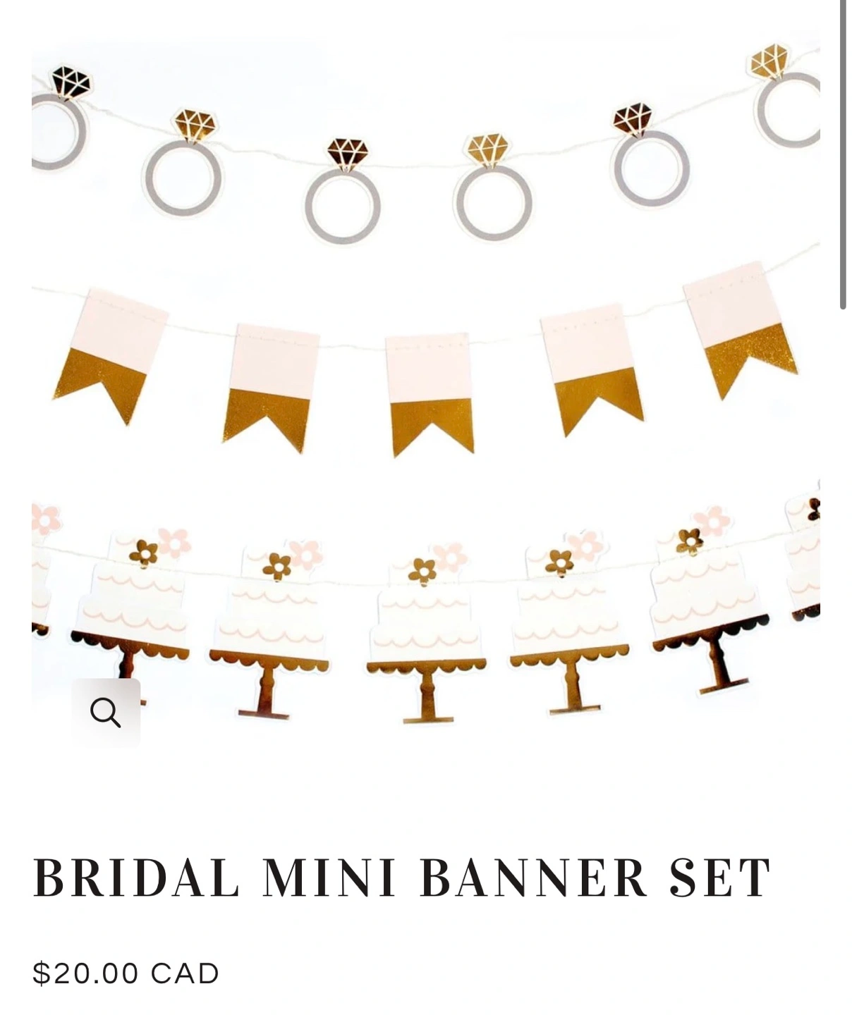 Beautiful shimming gold mini banner for that intimate wedding or bridal shower.