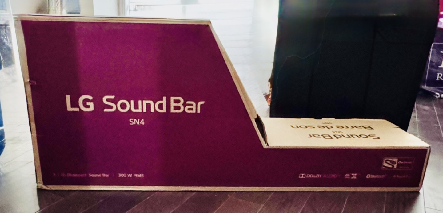 LG Sound Bar SN4 model. 2.1 channel Bluetooth soundbar. 300W RMS. Dolby Audio.