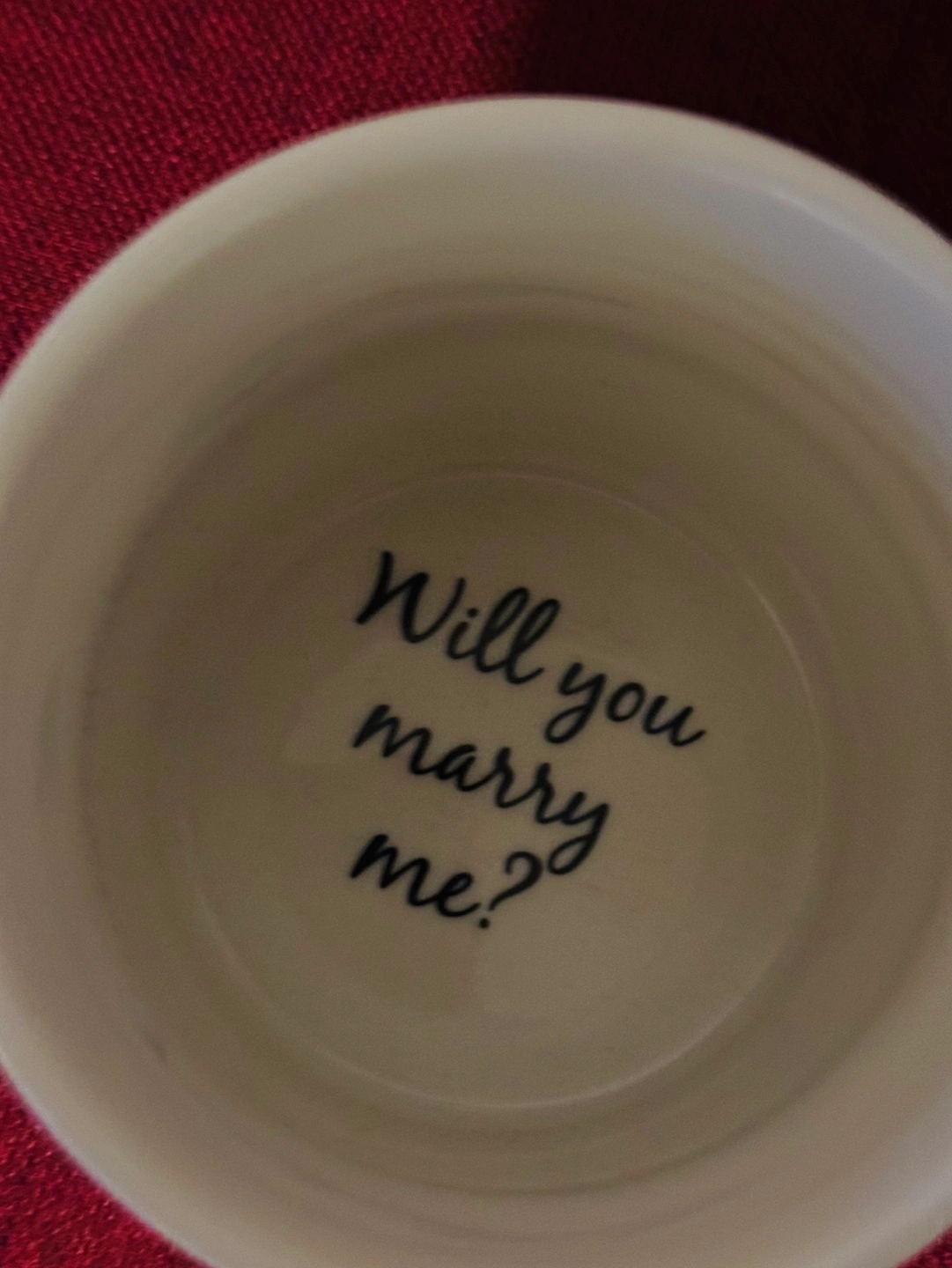 This mug is perfect for that private and low key person that wants to pop the question in a fun way. A nice mug of coffee, tea or hot chocolate then wait in anticipation as the bottom is discovered . ๐ฅฐ
