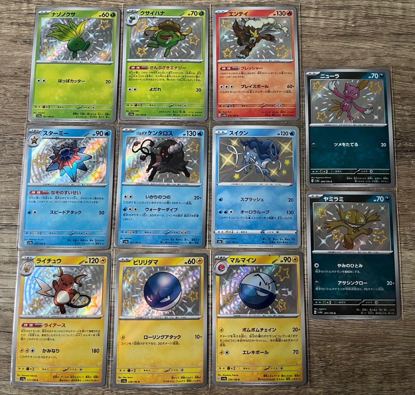 Please message me for individual card prices. Collection of Shiny Pokemon cards (Japanese), including Raichu, Suicune and Entei. All cards are in near-mint condition.