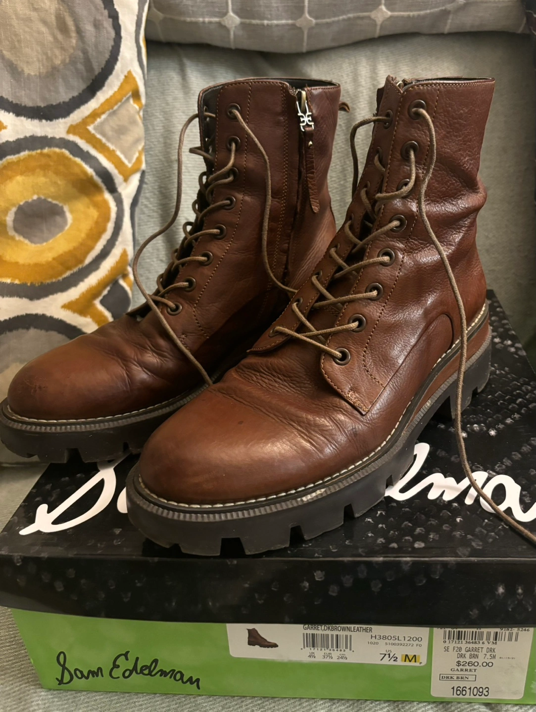 Sam Edelman Garret Combat Boots - Dark Brown Leather