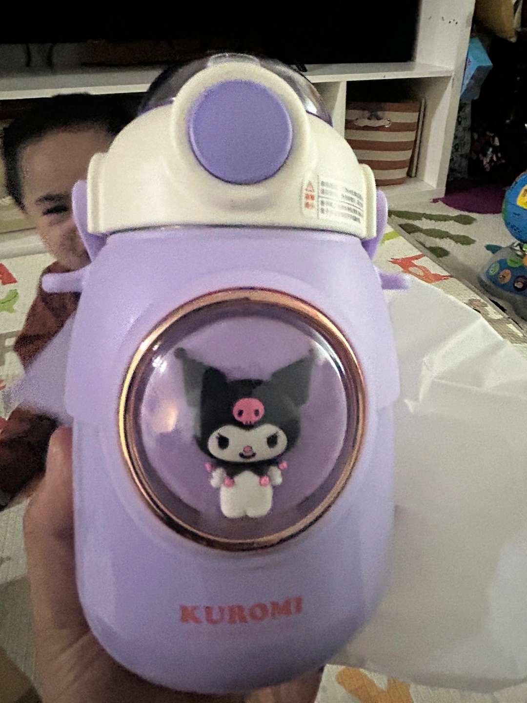 76Adorable Kuromi water bottle. Purple colour. Features a carrying strap. 700ml capacity. New in box.