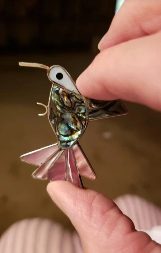 Hummingbird abalone shell brooch pin