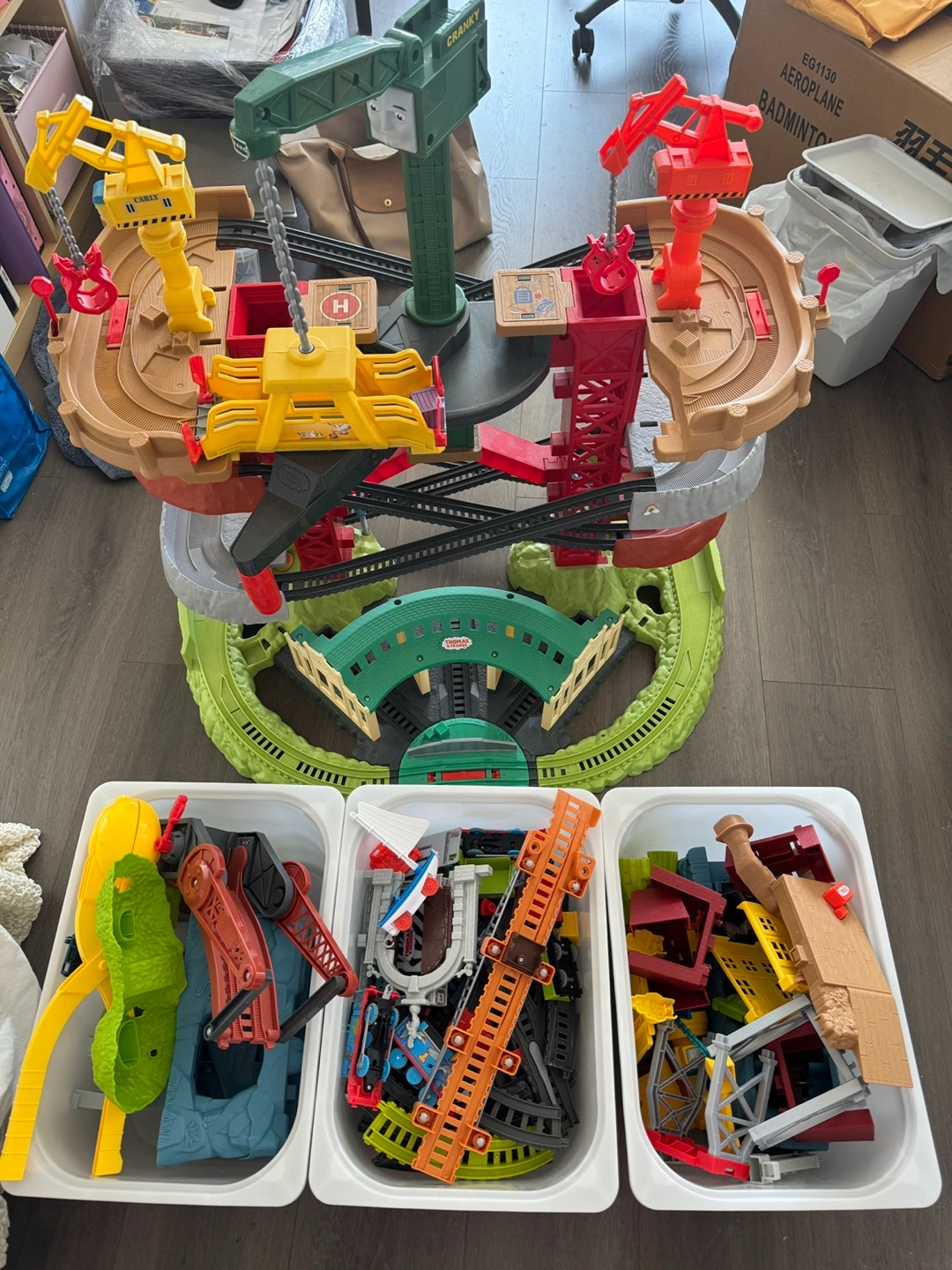 Large Thomas & Friends train set. Includes multiple levels, cranes, and extensive track. Many accessories and pieces. Ideal for imaginative play. Great condition.