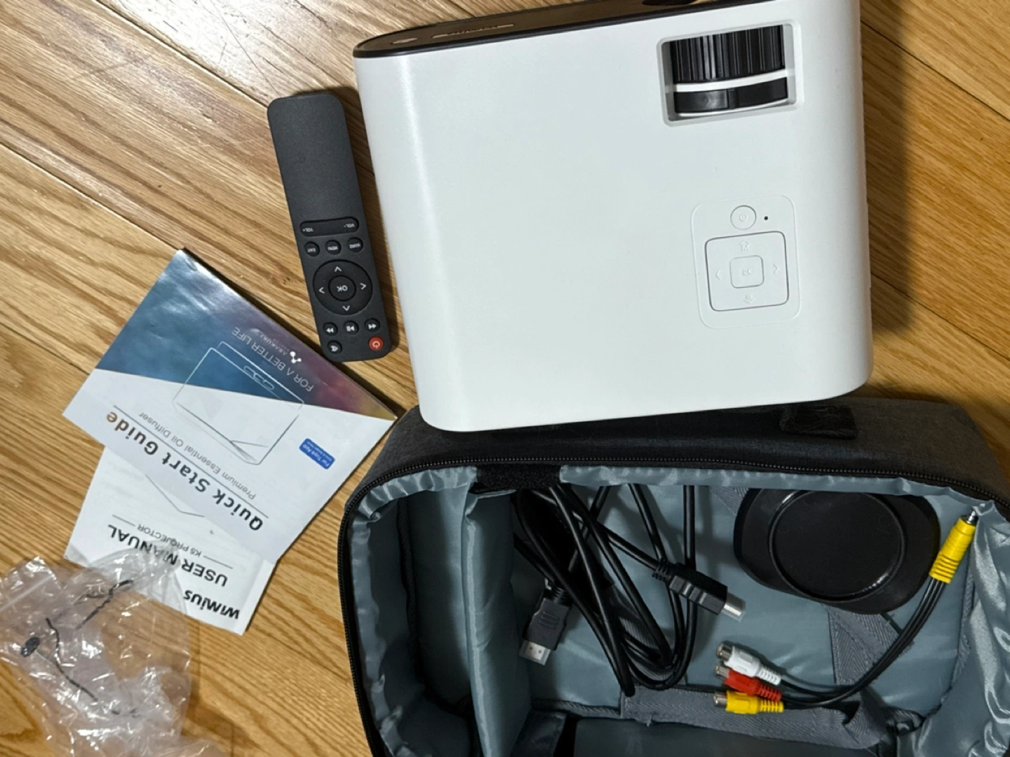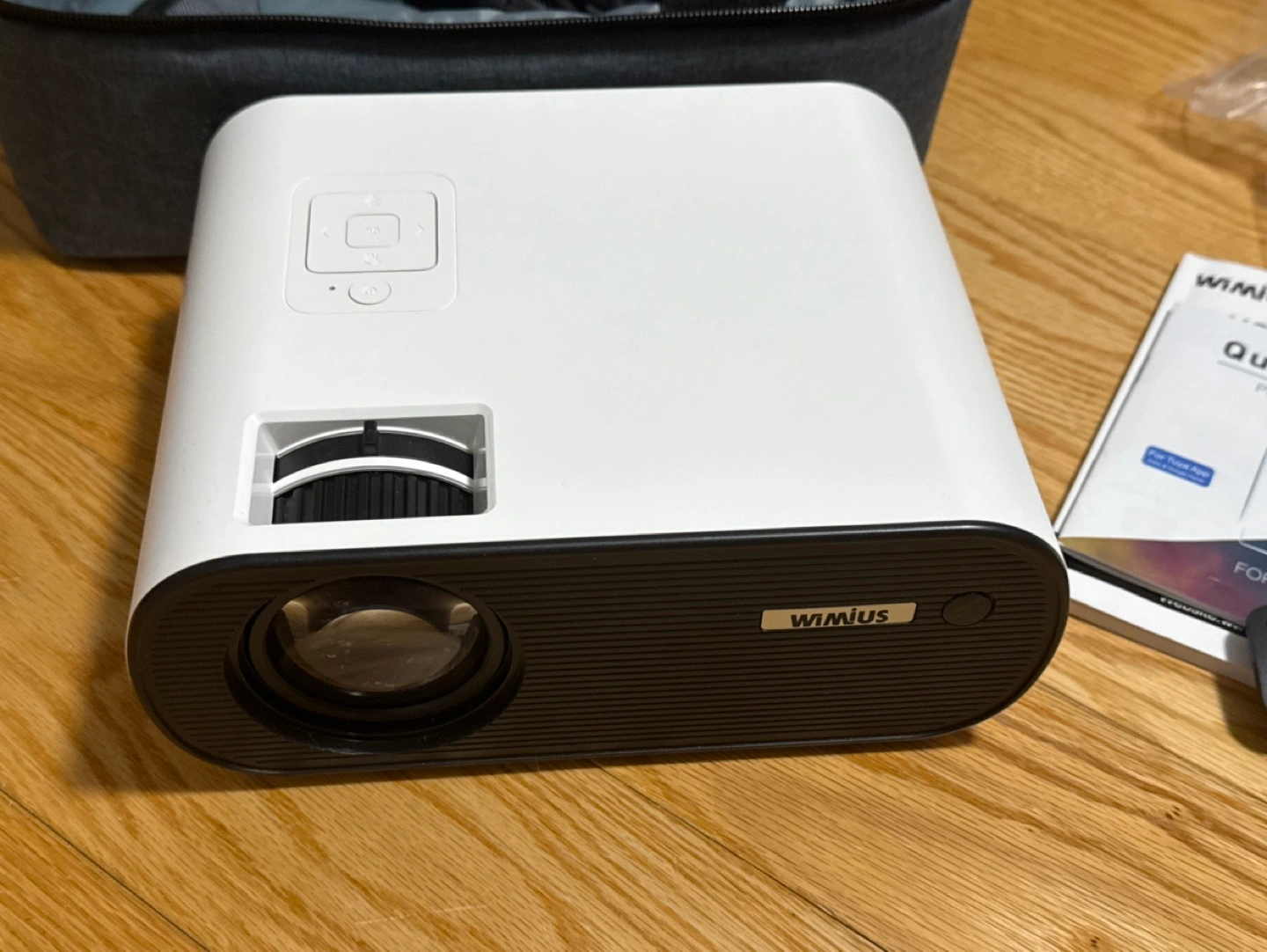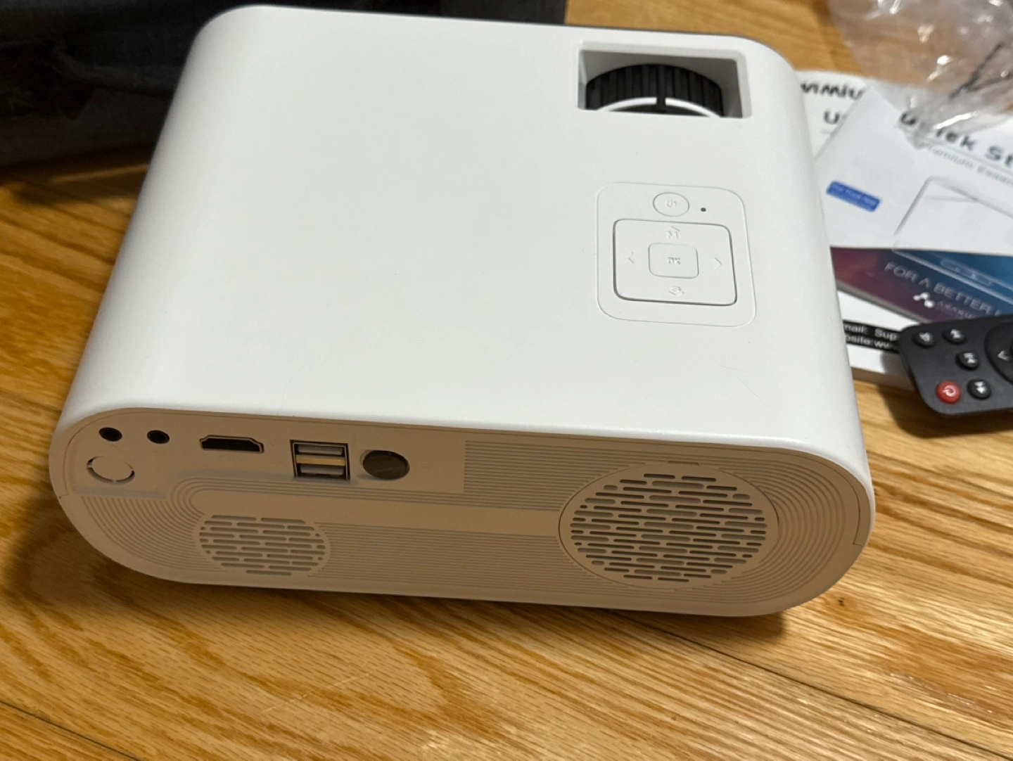 Portable projector. Includes remote, cables, and carrying case. Great for movies or presentations. User manual included. In a very good condition as I only used it once