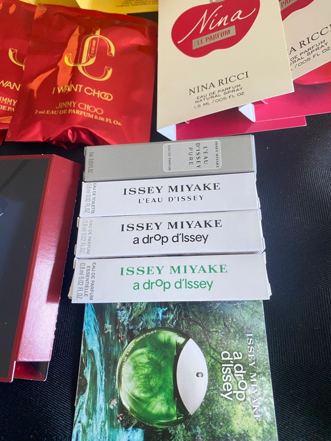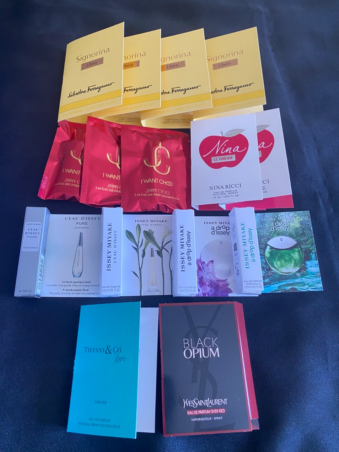 Large collection of perfume samples. Includes various brands and scents. Great for trying before committing to a full bottle. Variety of sizes and packaging. $3 each.