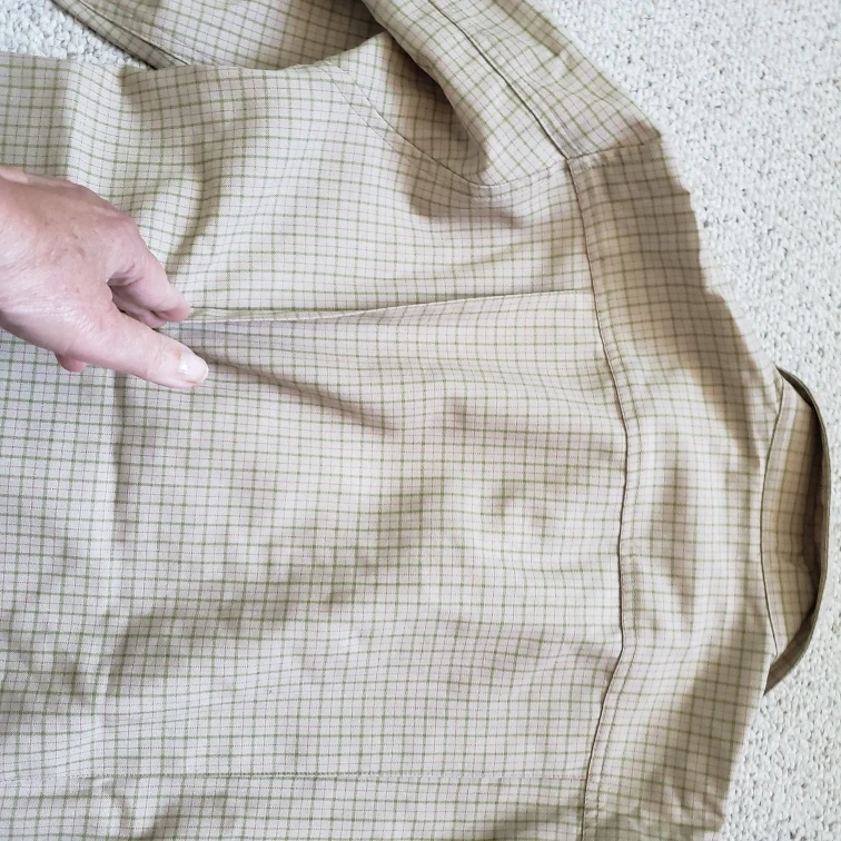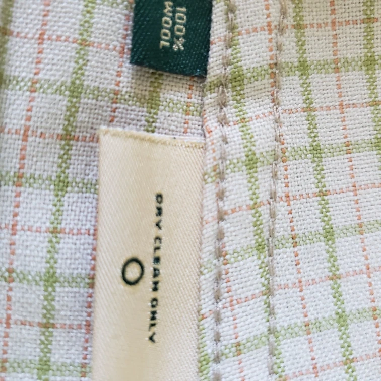 Long-sleeve button-down shirt. Beige and green plaid pattern. Vintage from 90. Never worn. Excelent condition. 100%wool fabric.