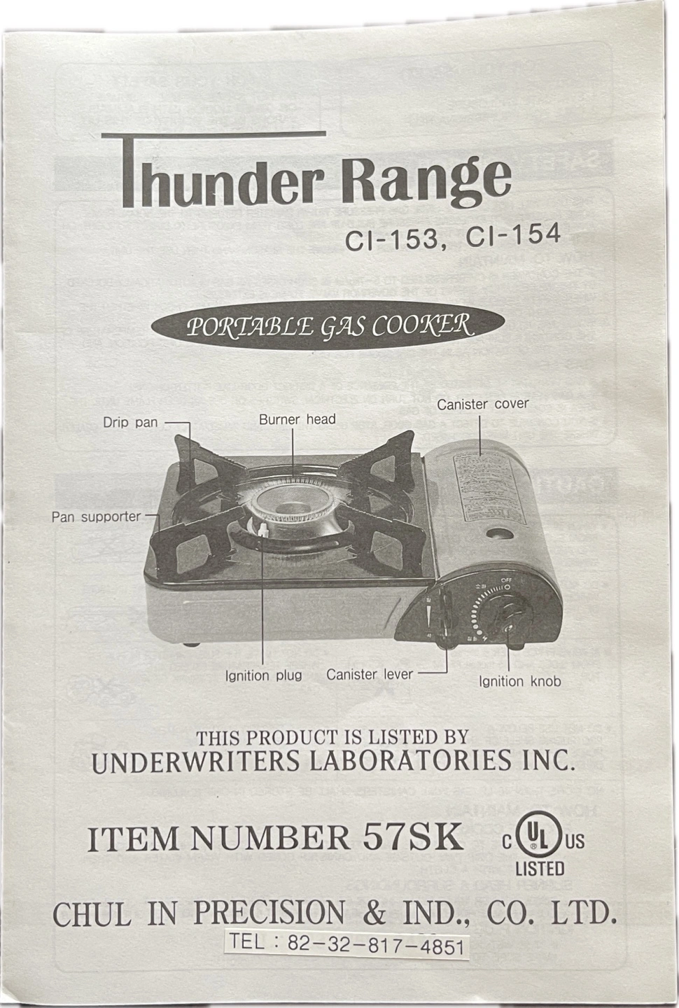 Thunder Range Portable Butane Gas Cooker - Model C1-153