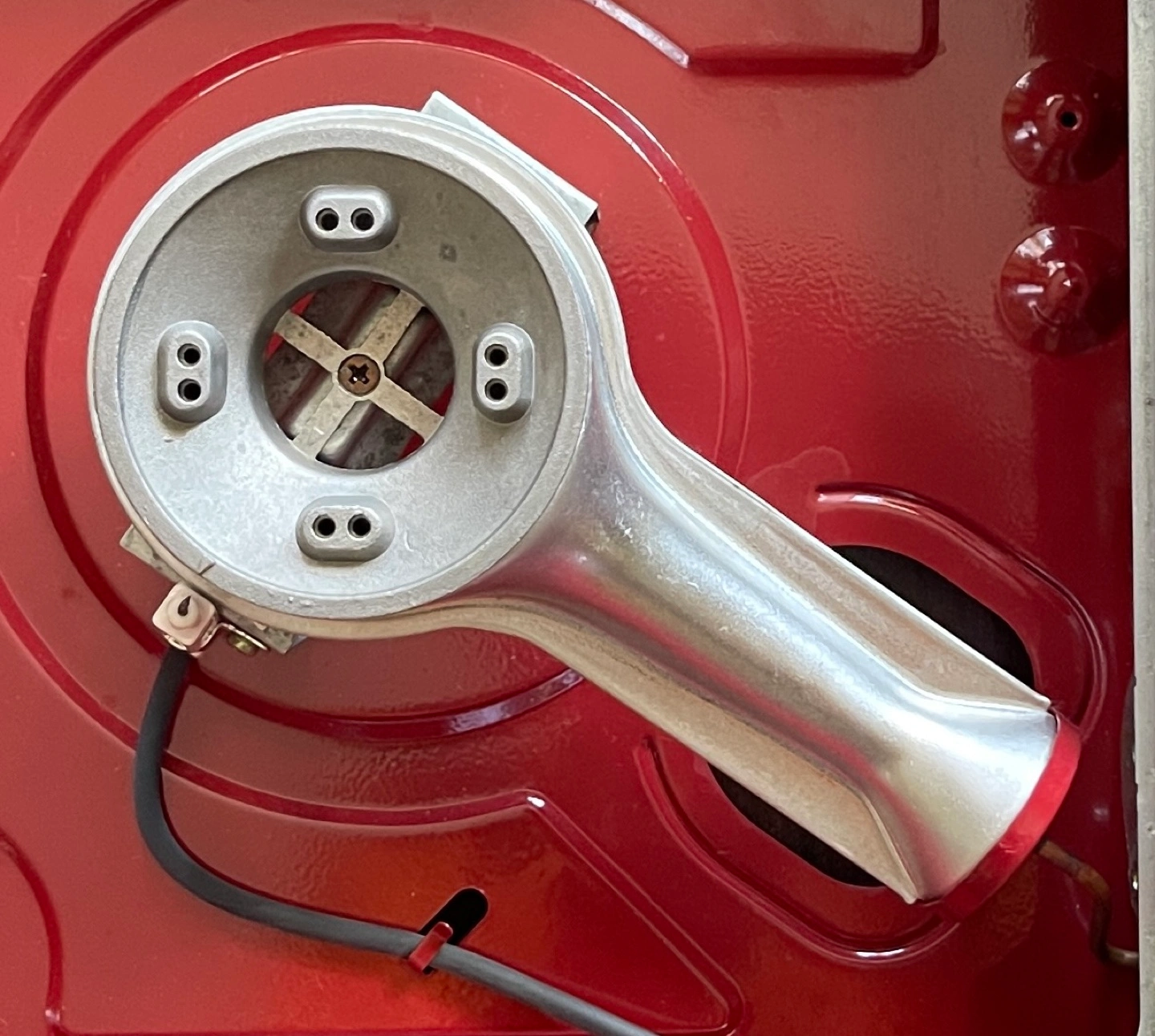 Portable butane gas cooker. Red body, black accents. Rarely used, almost in mint condition, includes original carrying case. Very lightweight weight, suitable for indoor/outdoor. Come with 4 cans complimentary butane fuel.