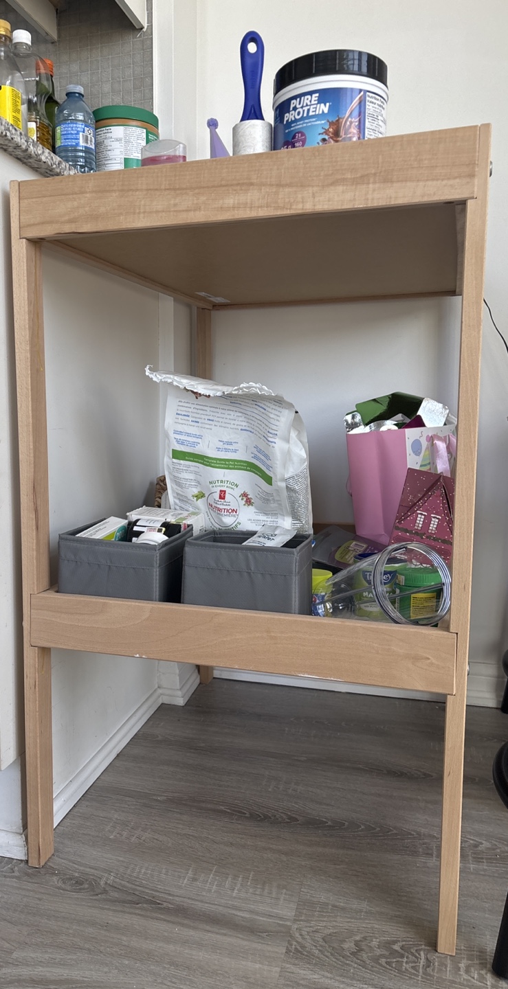 Buy & SellWooden Storage Shelf/Side TableWooden Storage Shelf/Side Table$9Two-tiered wooden shelf. Great for storage or as a side table. Light wood colour. Good condition.ConditionLike newWHERE TO MEETCheck LocationView MapSELLERverifiedBerkanFort York66469 reviews3 chats·5 favorites·164 viewsSEND CHAT TO SELLERHi Berkan! I’m interested in your listing.Hi Berkan! I’m interested in your listing.Get the Karrot app to chatSign In to chat