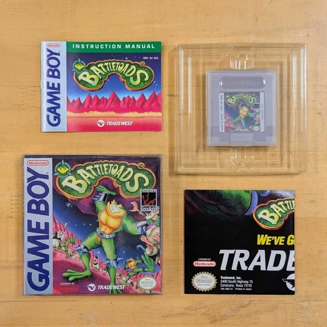 Original Gameboy Battletoads Complete with manual, cartridge case, box, poster, plastic tray and box protector. Very good shape. Pickup Don Mills Toronto or in Whitby.