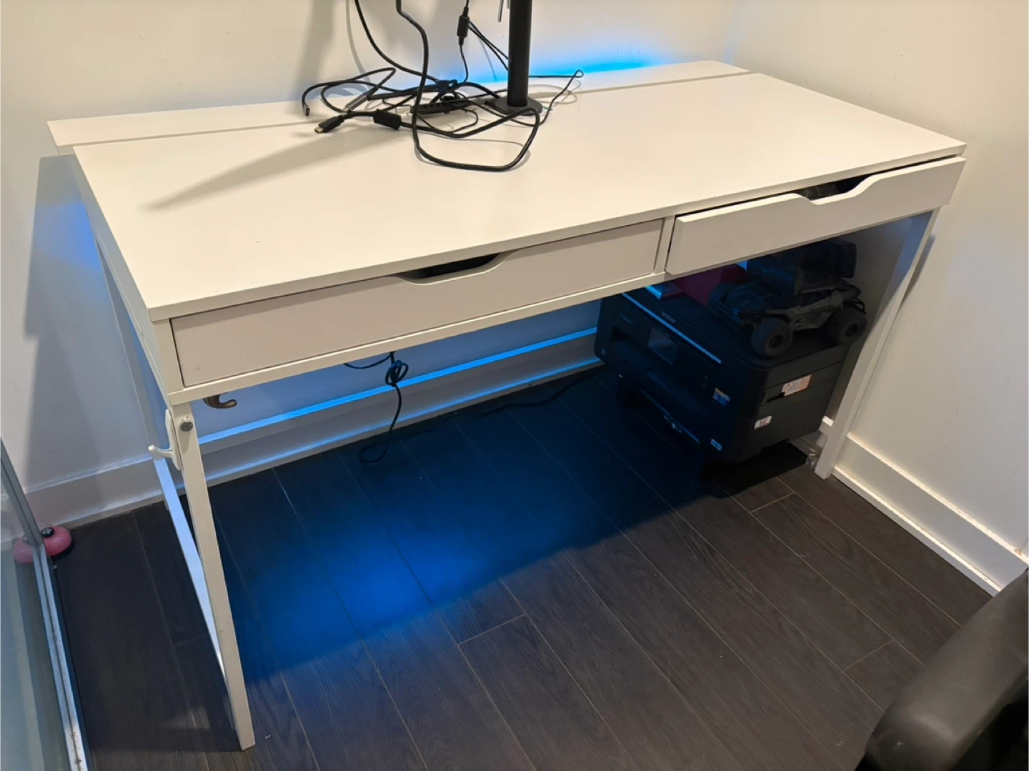 Selling my IKEA ALEX desk in white. This is the larger 132 cm model, which offers a great amount of surface area for a dual-monitor setup or a laptop and notebooks.