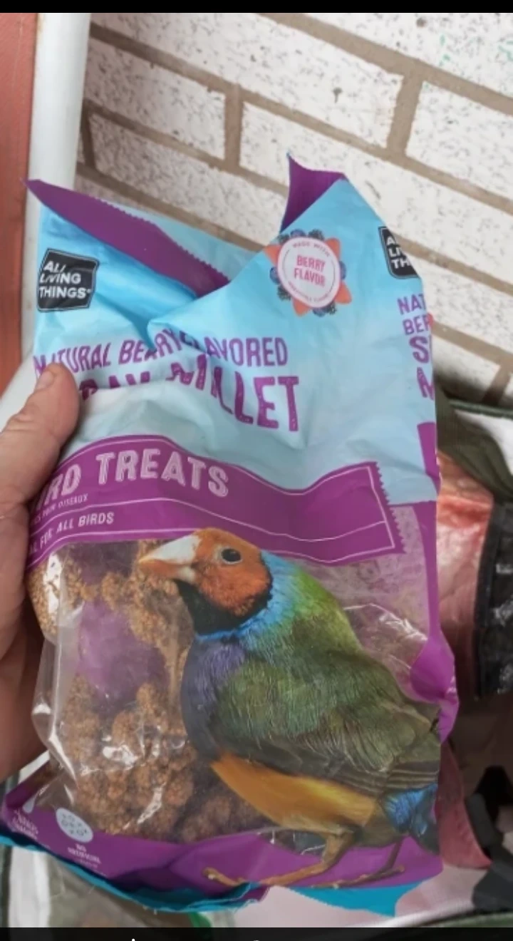 All Living Things Natural Berry Flavored Raw Millet Bird Treats. Made with berry flavour. Suitable for all birds!