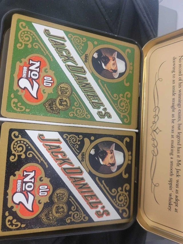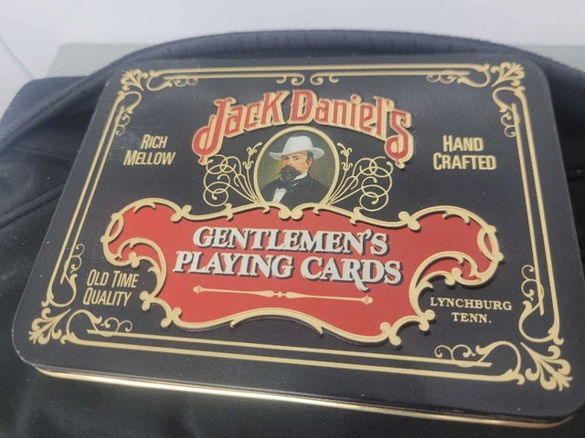 I'm offering a set of Jack Daniel's Gentlemen's playing cards in a collectible tin. This vintage set features unique Jack Daniel's themed designs on each card. The cards are in good used condition, perfect for collectors or a fun game night.