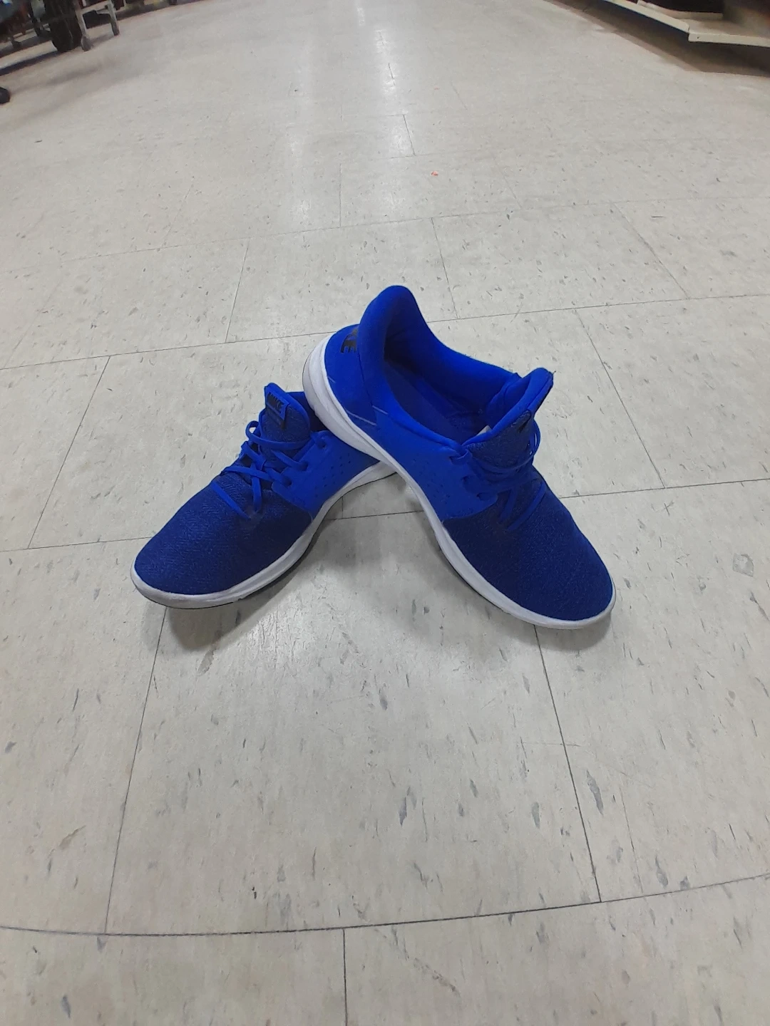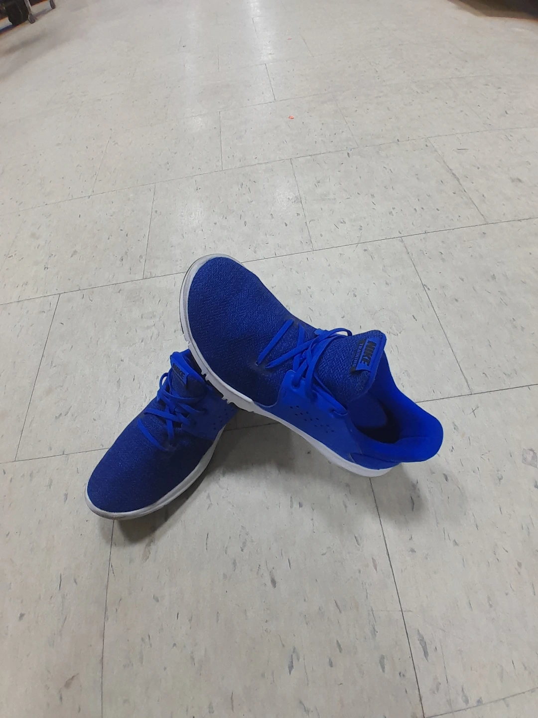 Nike athletic shoes in a vibrant blue colour. They're designed for comfort and performance. The shoes feature a breathable mesh upper and a supportive sole Men's Size 11