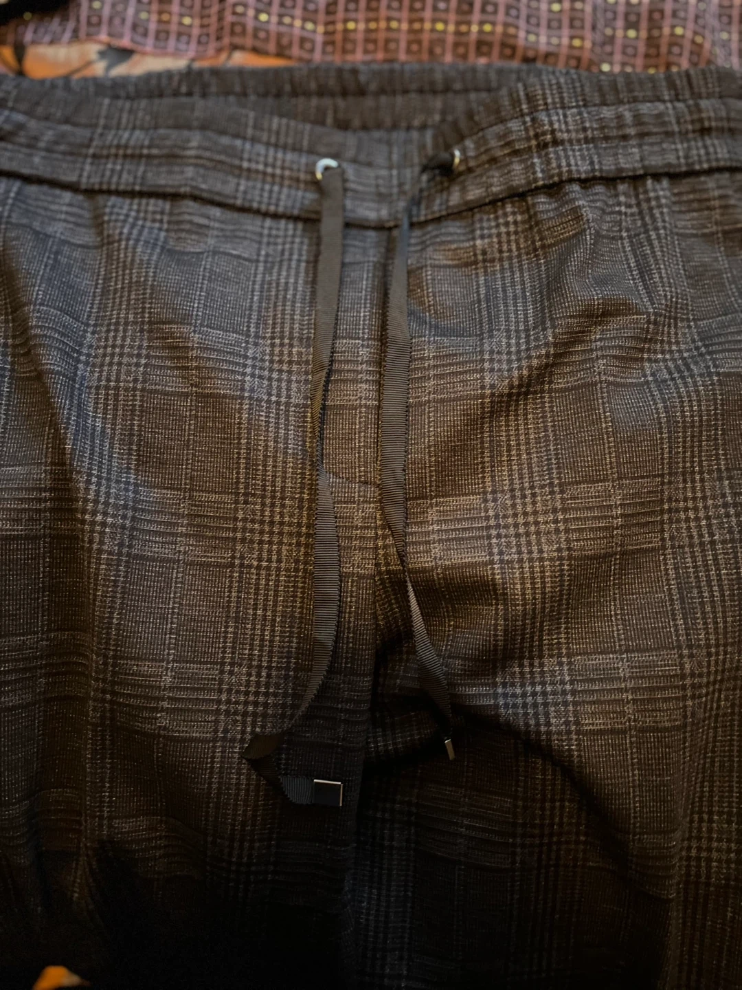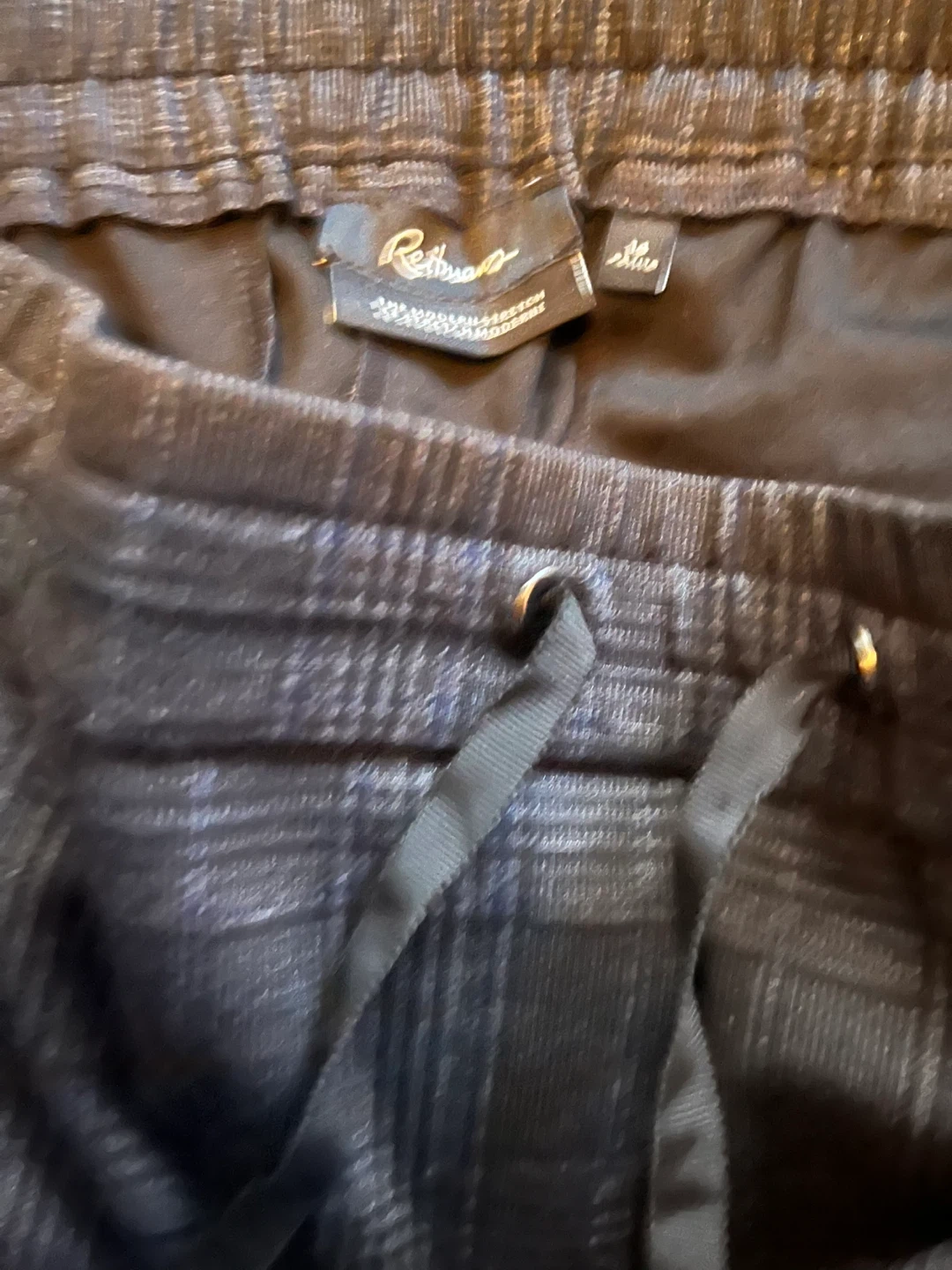 These Reitmans pants feature a classic plaid pattern with a modern stretch fabric. They're designed for comfort with an elastic waistband and drawstring. Size is 14 petite.