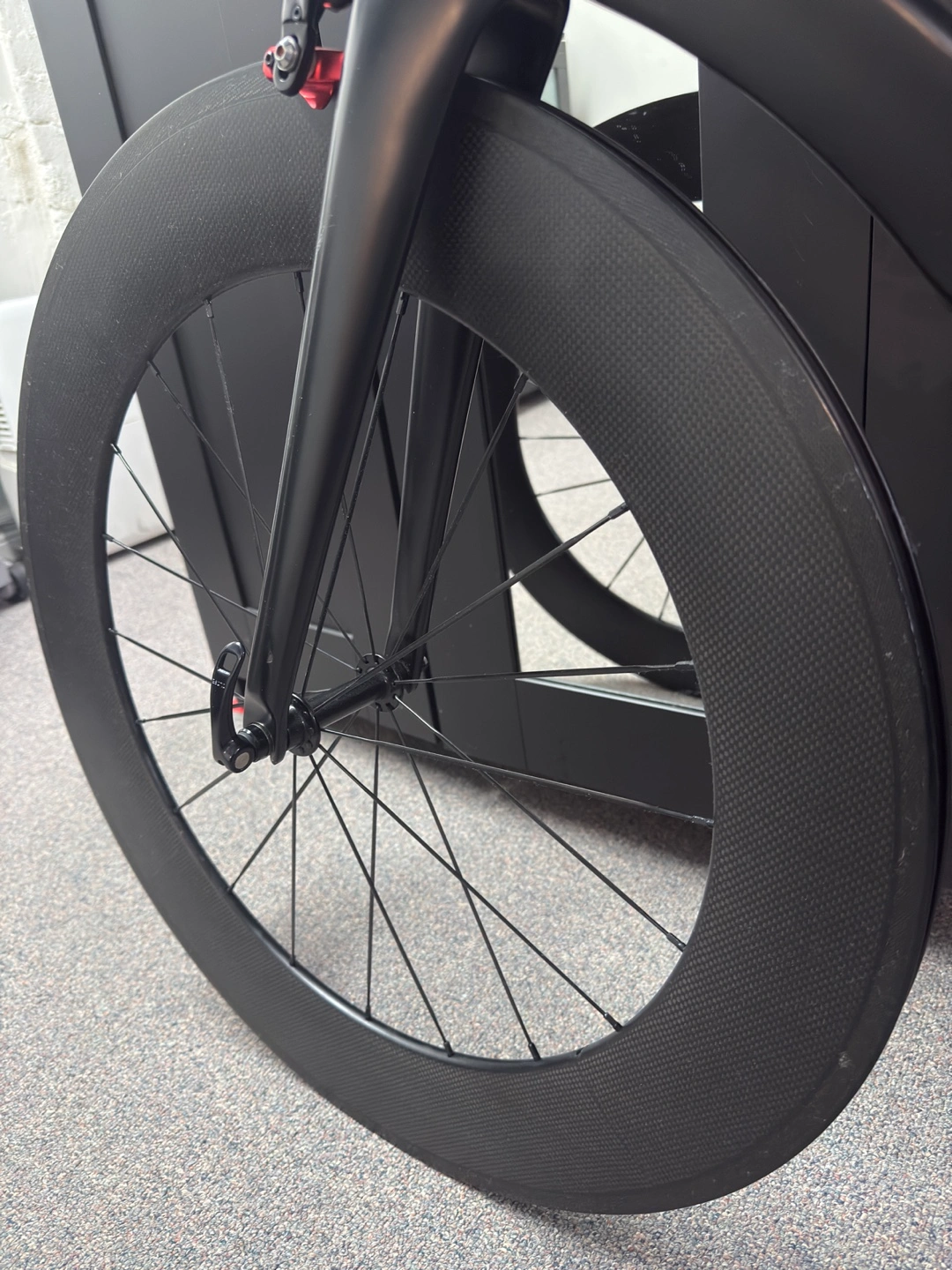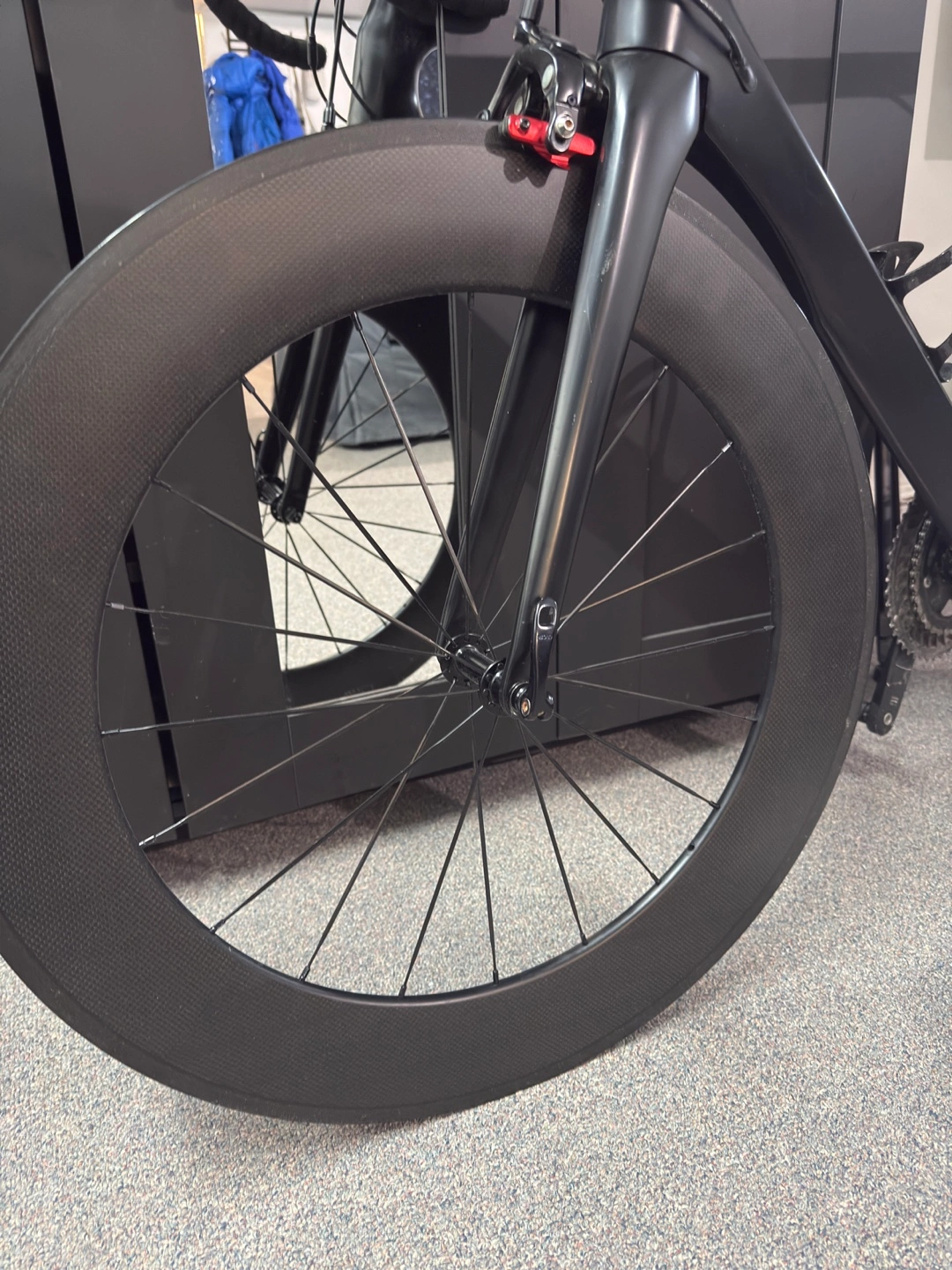 296 month Front 88mm Carbon Fiber bike wheel, full aero spokes. Will include needed 18/25-622 inner tube. Tire not included.