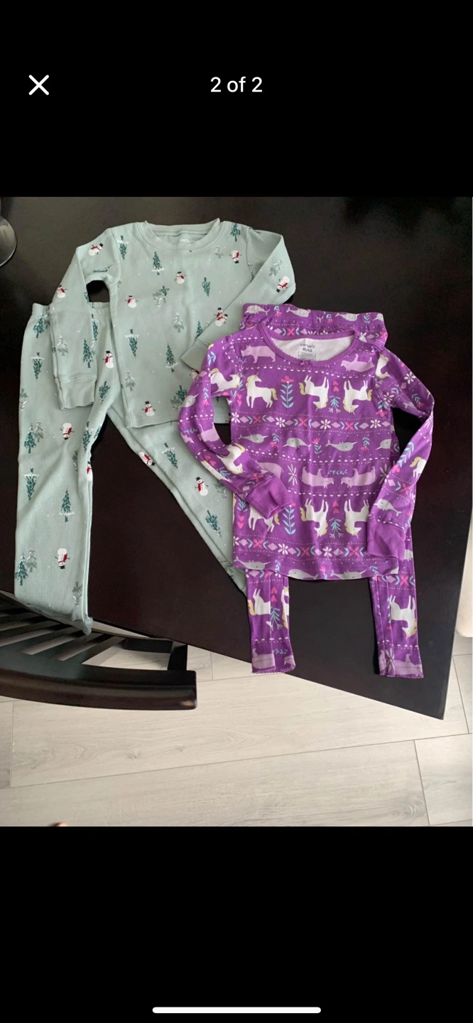 55Bundle includes five pairs of girls' pajamas. Sizes 4T/4A. Various patterns and colours. Great for colder weather.