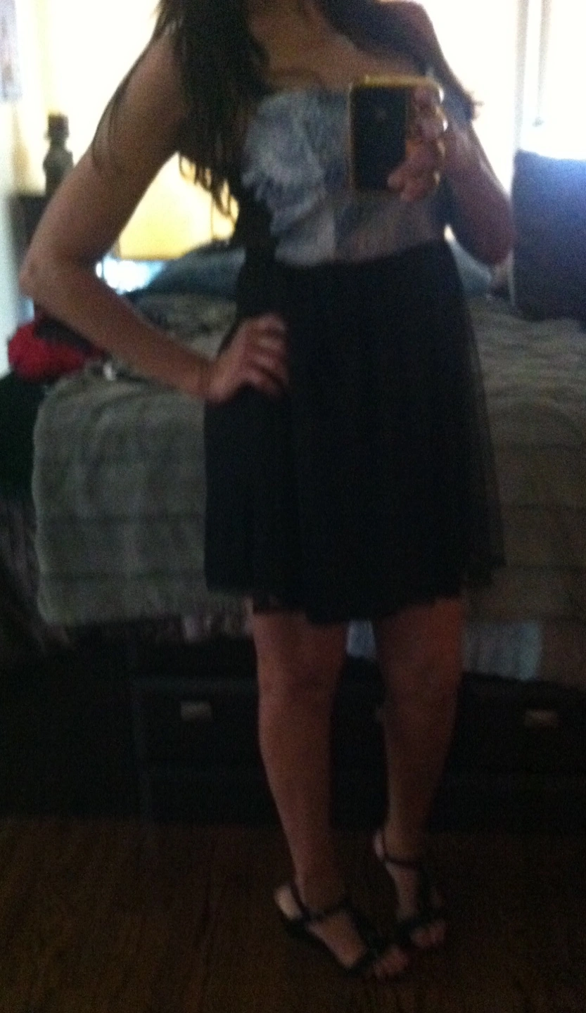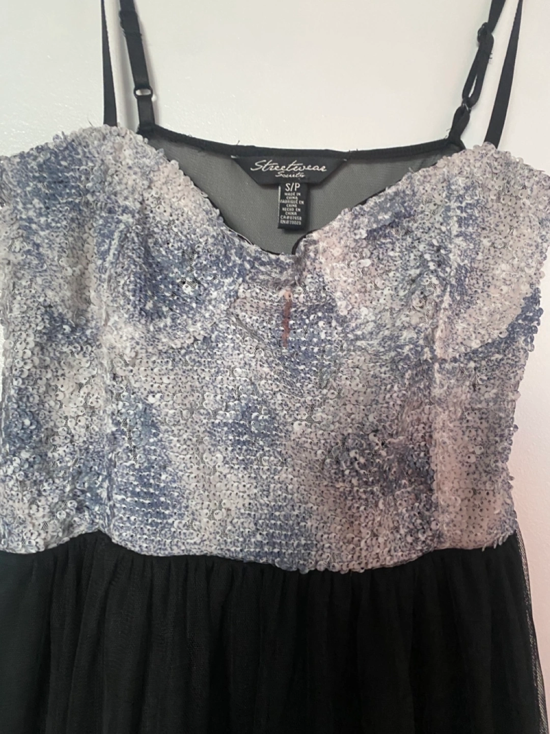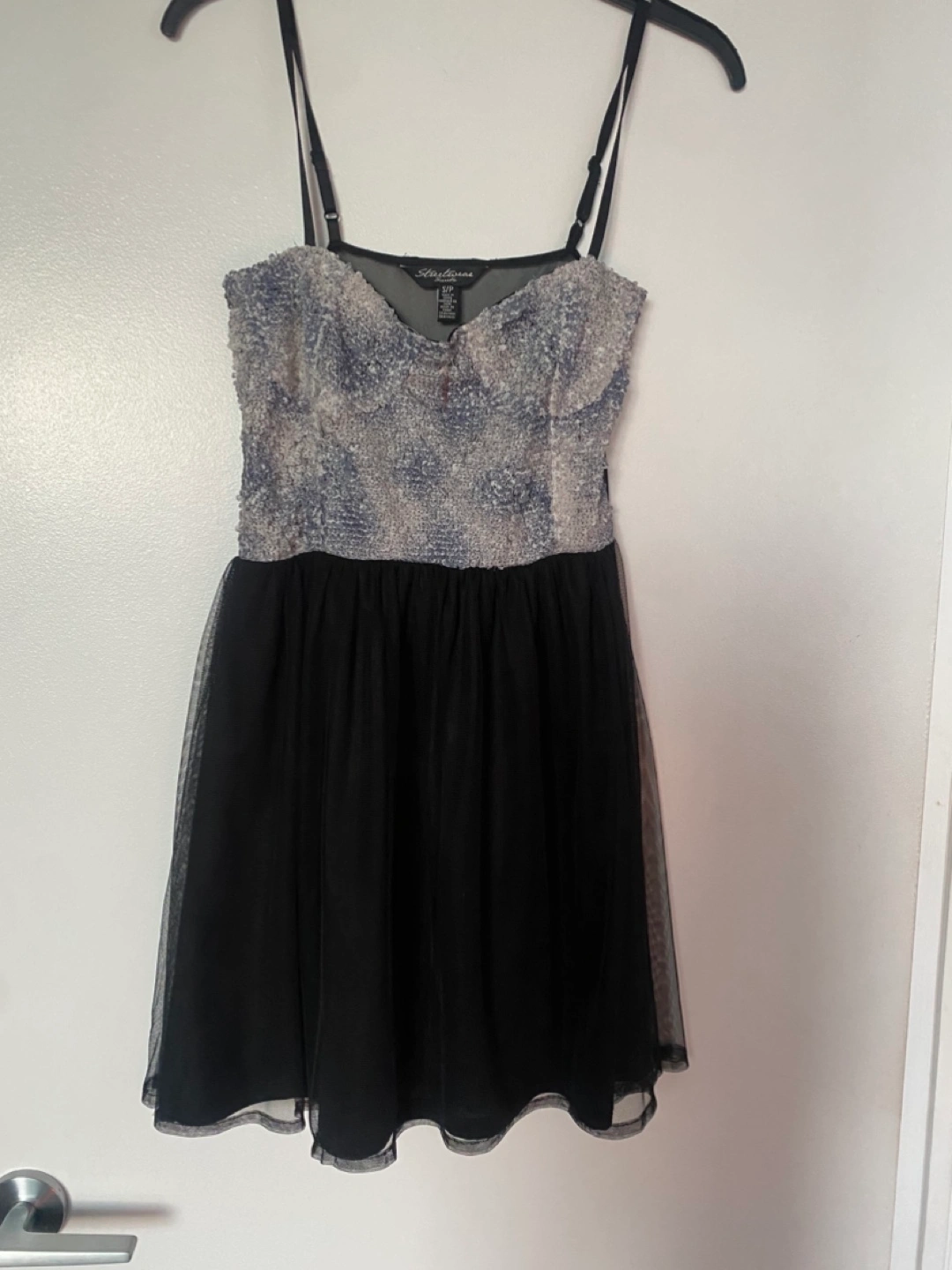 Beautiful little black dress. Features a beaded bodice and tulle short skirt Spaghetti straps. Super cute! Perfect for a party or special occasion. Size small. All sheer back
