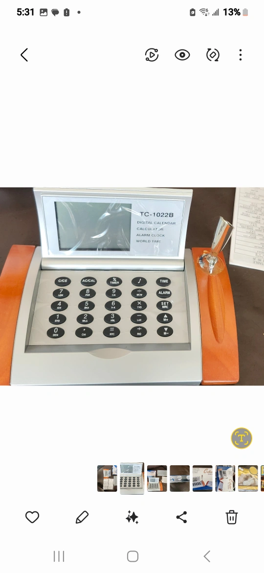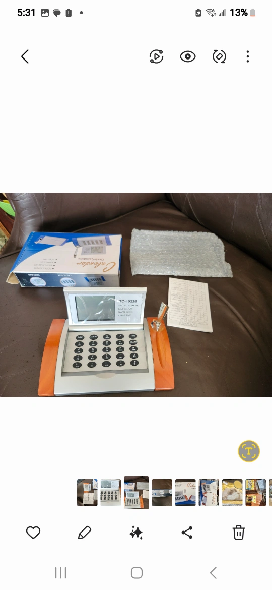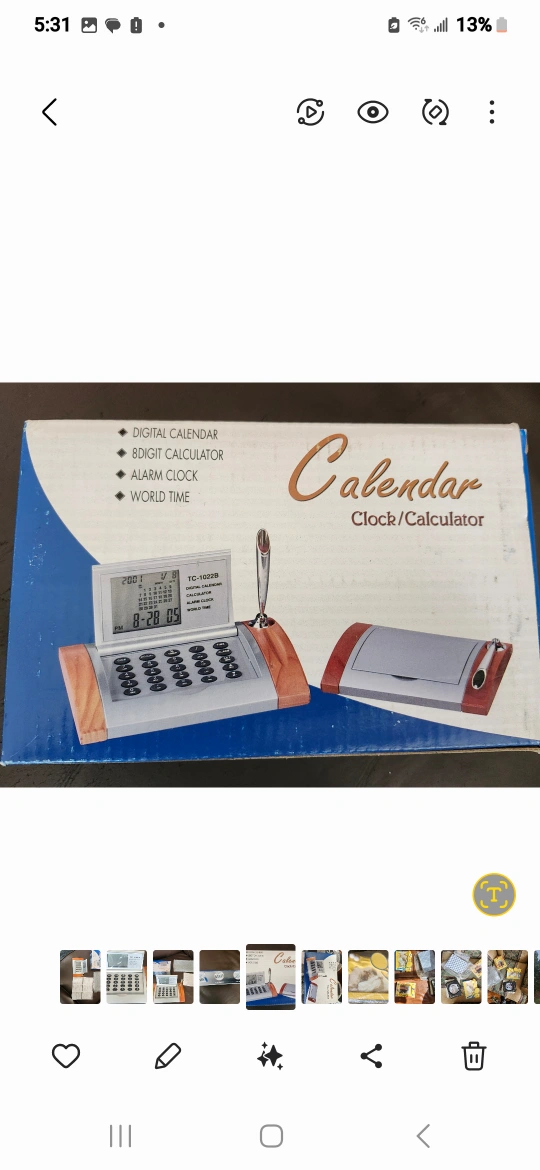 Vintage desk clock, calculator, and calendar combo. Features digital calendar, 8-digit calculator, alarm clock, and world time. Compact and convenient for the home or office. Comes in original box with instructions.