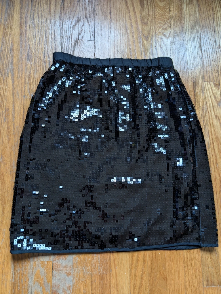 420Black sequined mini skirt. Elastic waistband. Party wear. Good condition. Length: 48 cm (18.9 in.)