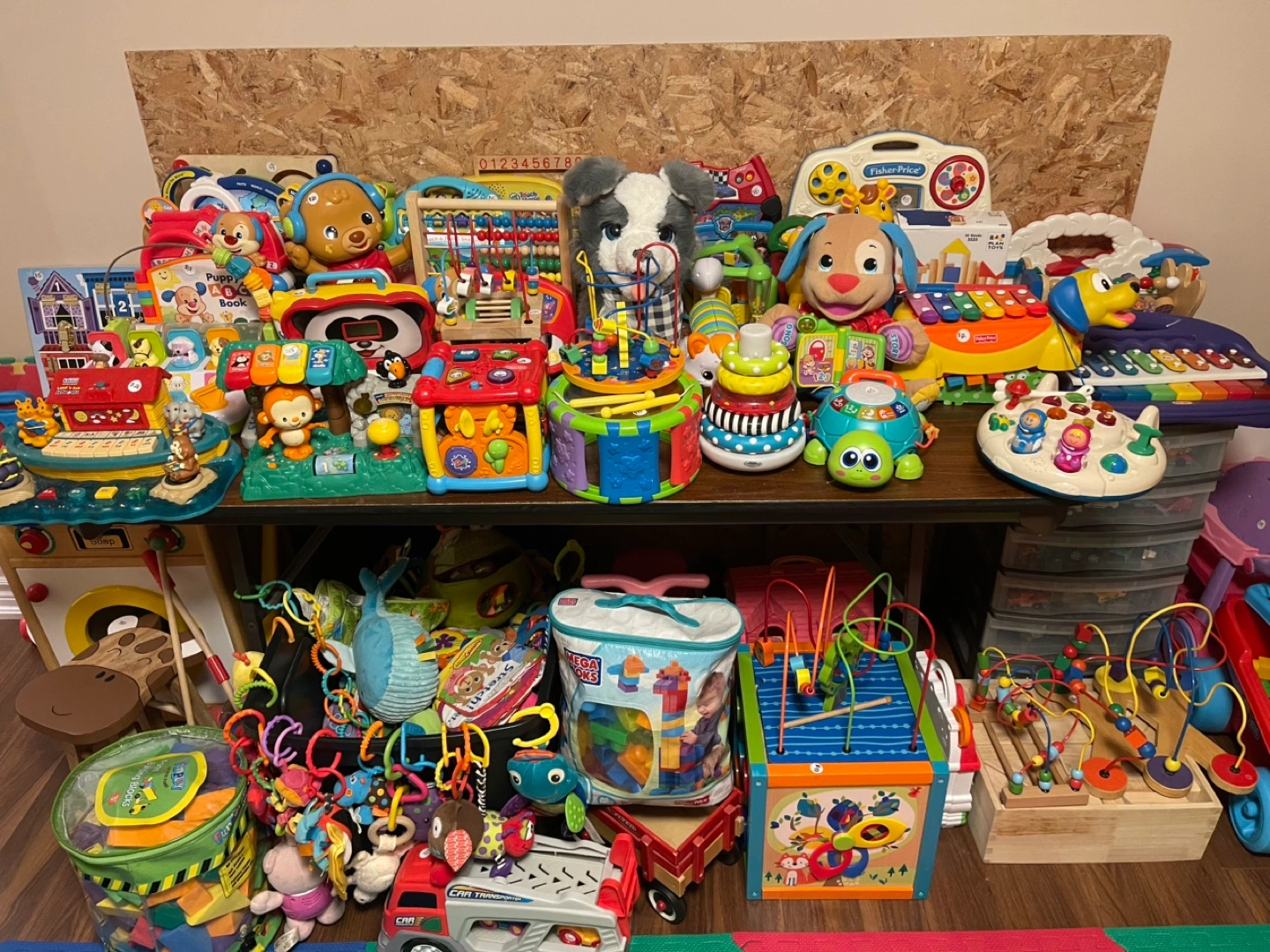 Leapfrog, Vtech, Fisher Price, Lego, Duplo, Mega Blocks, Lamaze, Bead maze, wood toys, musical instruments, hot wheels, blocks, walker, ride on, etc.