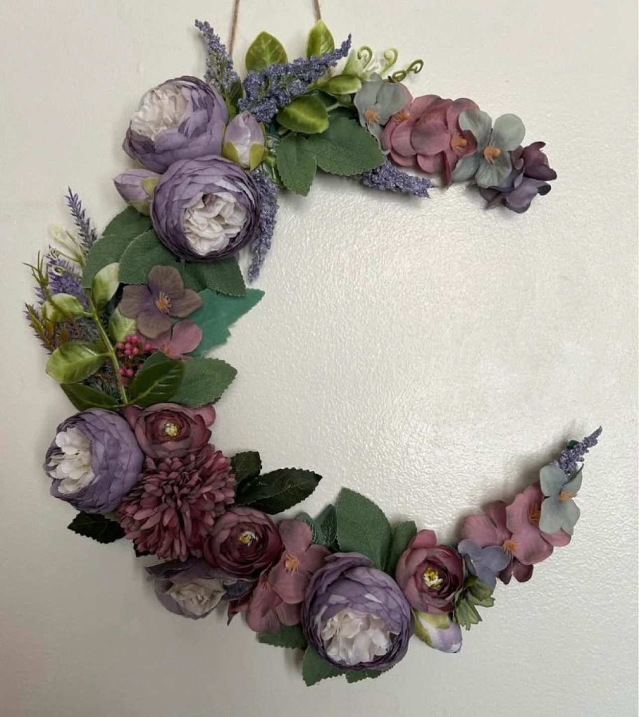 Beautiful crescent moon spring wreath. Hand made wreath