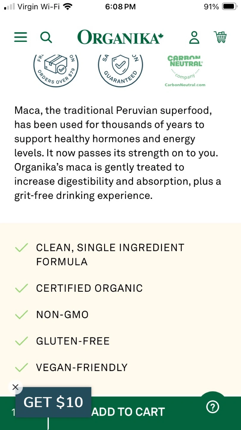 Organic maca powder. Peruvian superfood. Supports healthy hormone and energy levels. Gelatinized powder for better absorption. Gluten-free, vegan-friendly, non-GMO.
