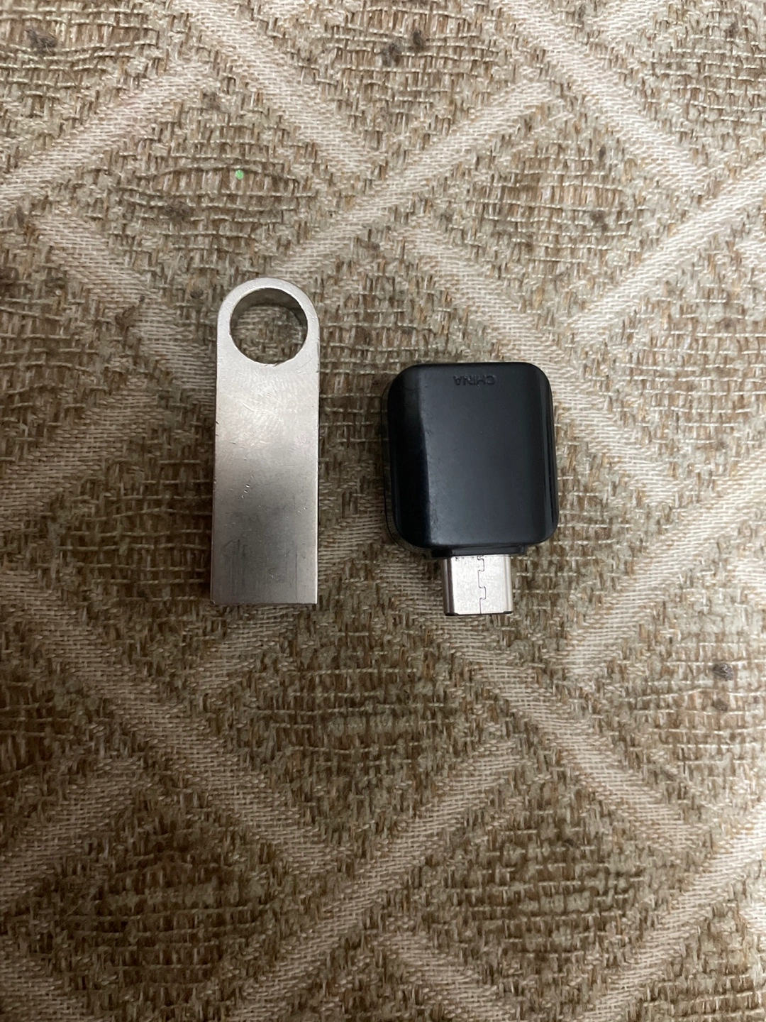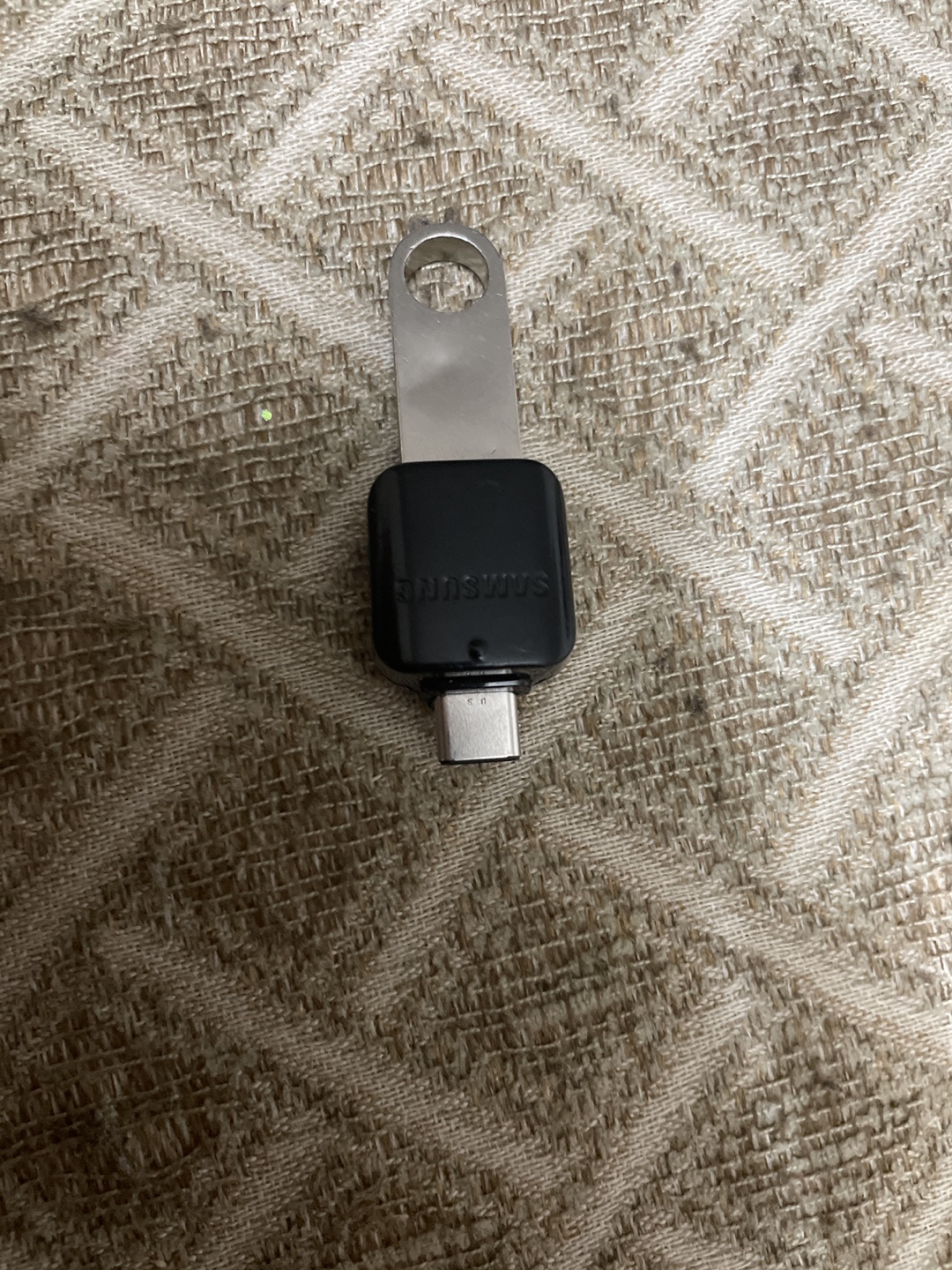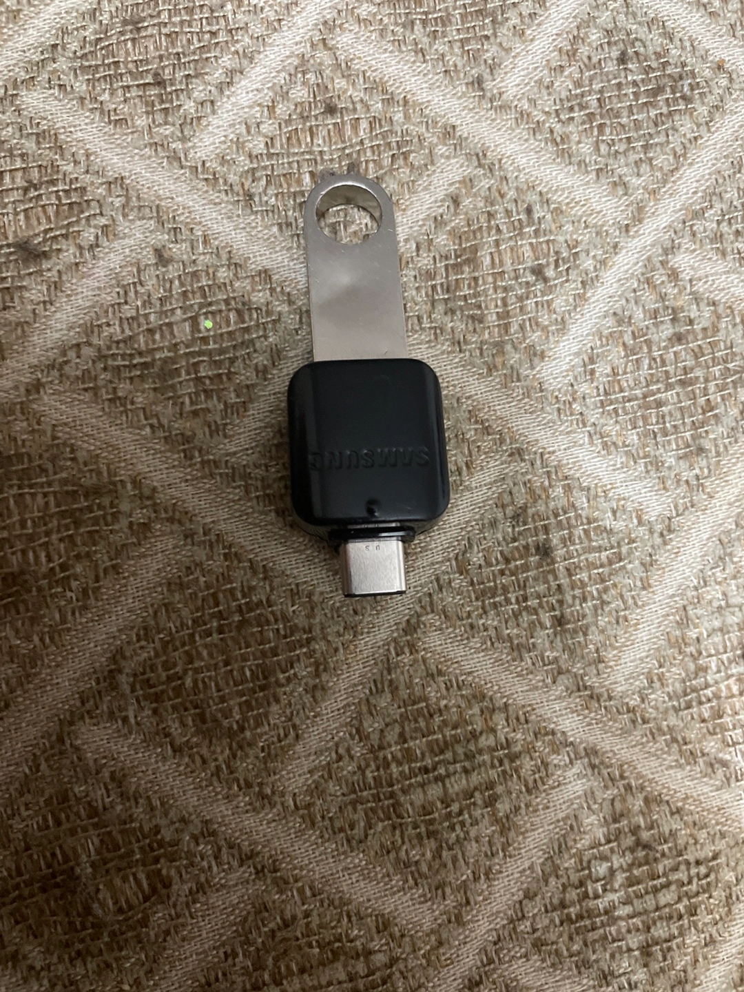 Pre-owned Samsung USB-C to USB adapter. Includes a metal USB flash drive. USB-C adapter shows minor wear. Flash drive appears unused.