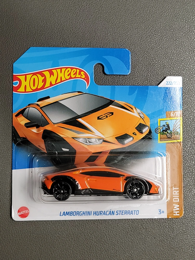39Collectible diecast car. Orange Lamborghini. Part of the HW Dirt series. Comes in original packaging.