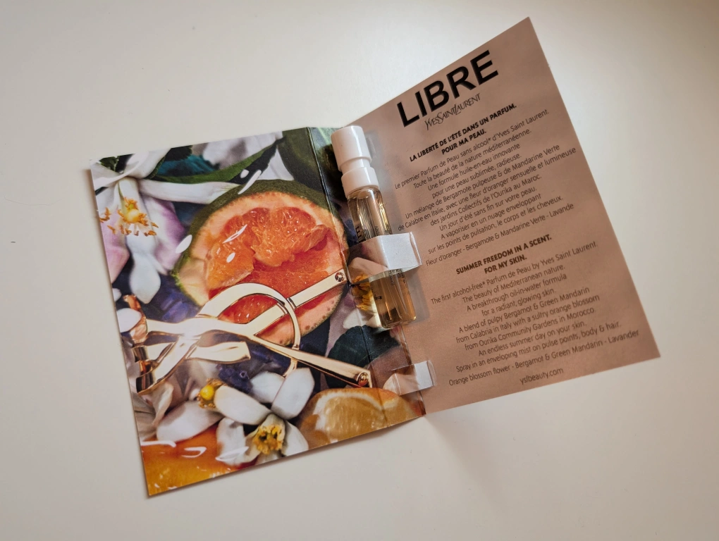 Yves Saint Laurent Libre L'Eau Nue perfume sample. New, unopened. Includes sample vial and cardboard packaging. Perfect for trying the fragrance before committing to a full bottle.
