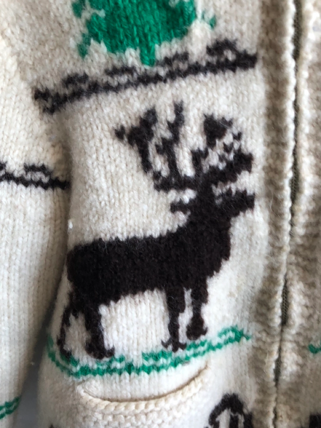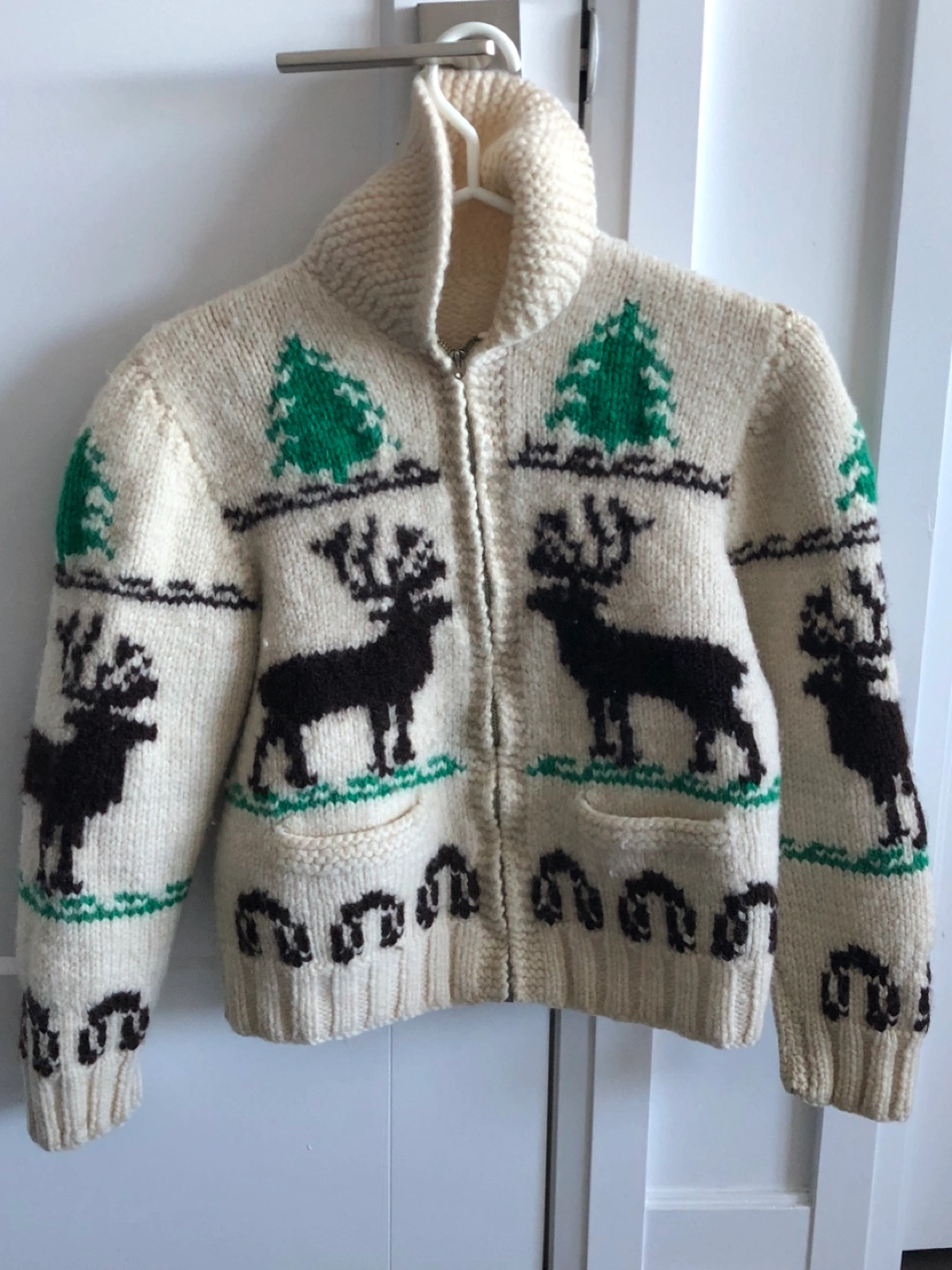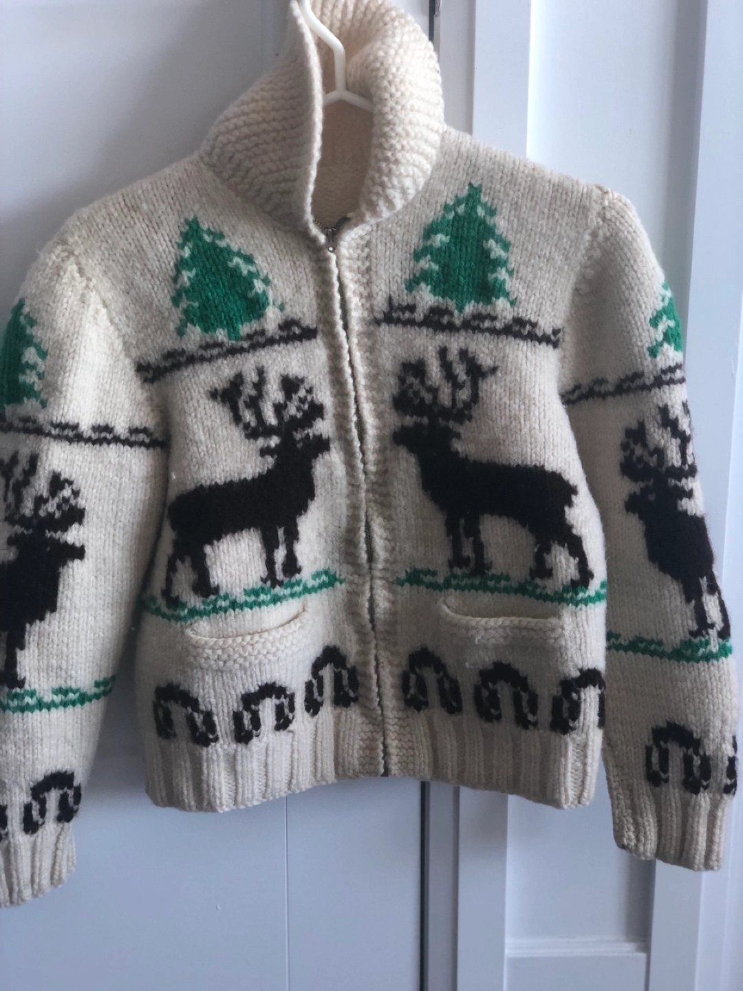 Vintage Cowichan moose zip cardigan wool hand knit