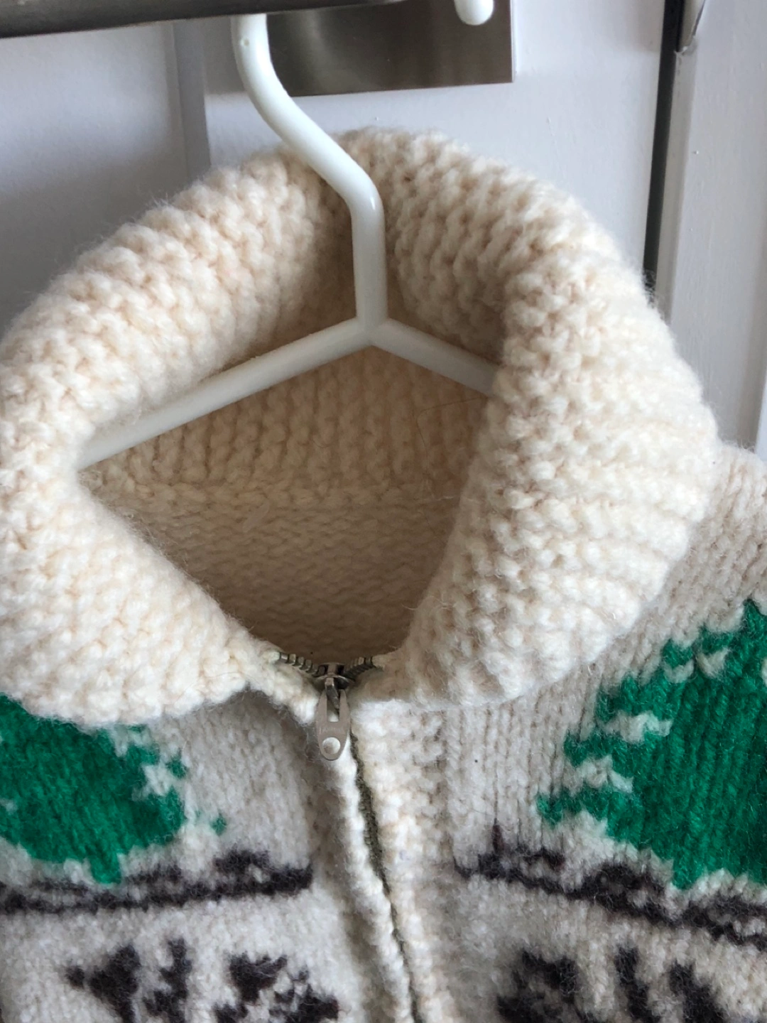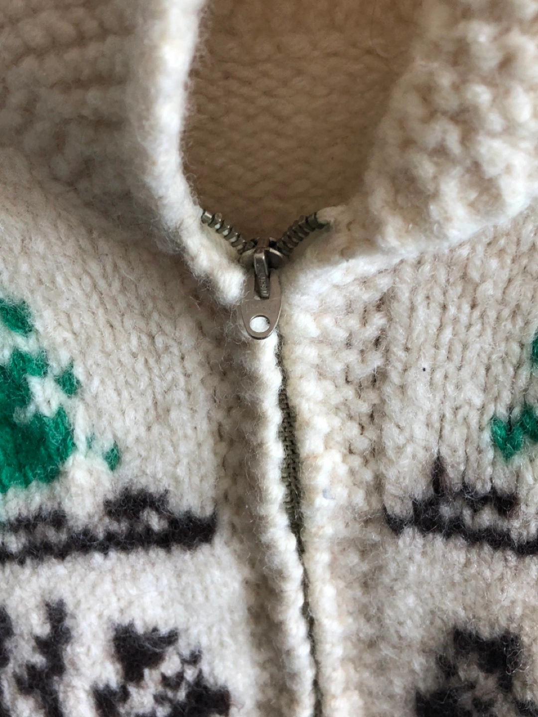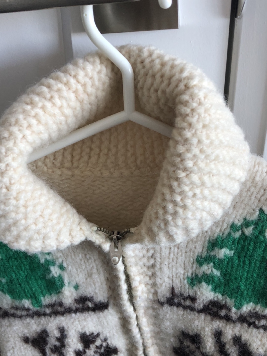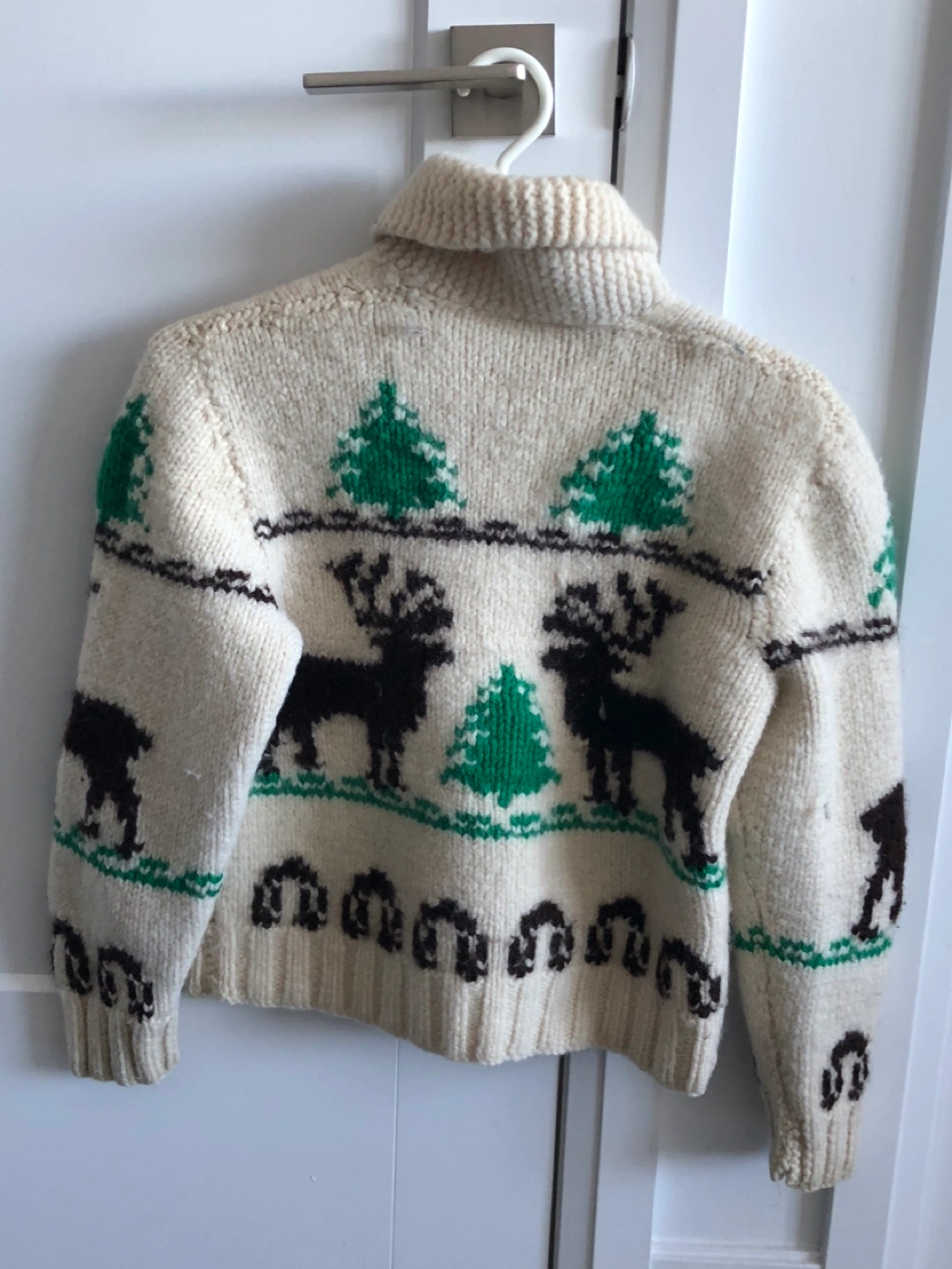 Vintage Cowichan moose zip cardigan wool hand knit