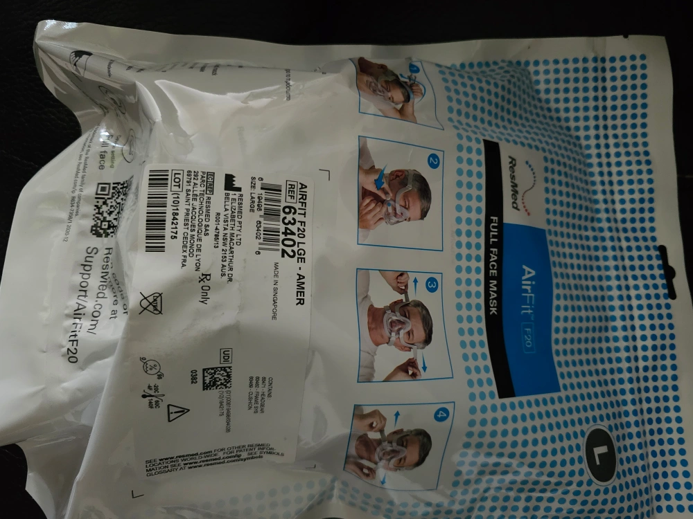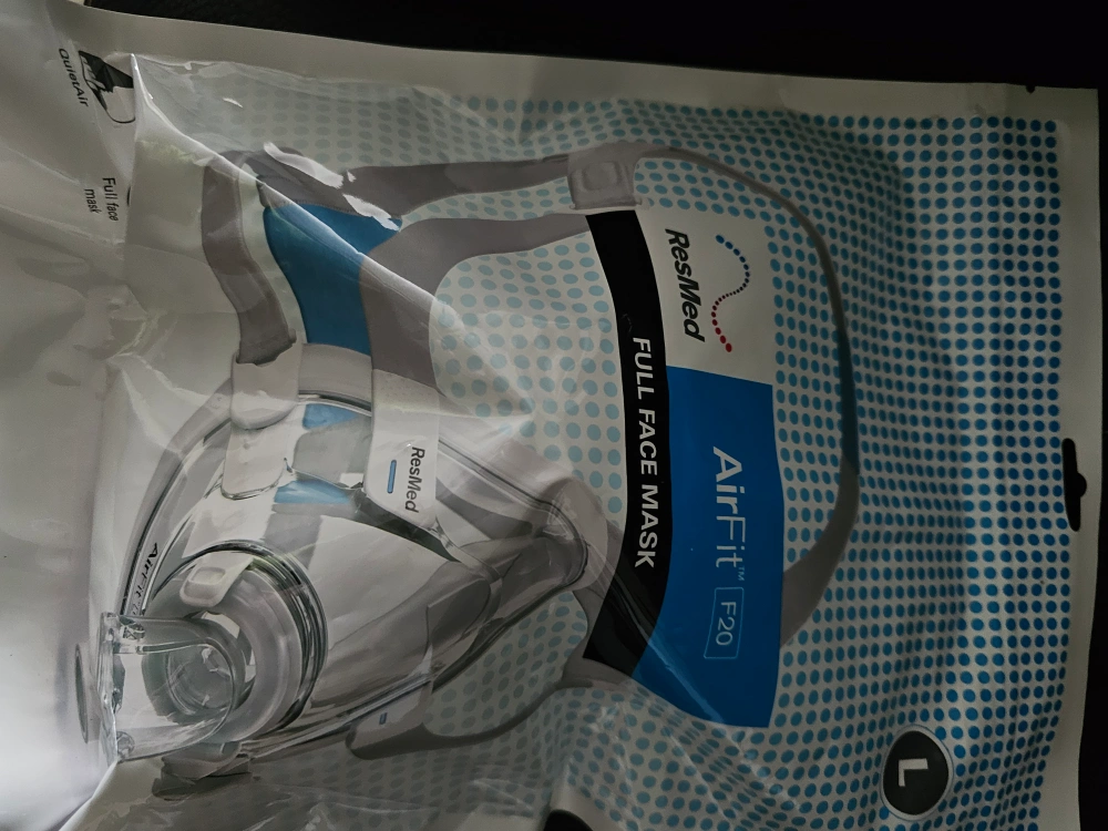 ResMed AirFit F20 full face mask, size large. ClimateLineAir CPAP tubing included. New, unopened packaging. Tubing is 15mm ID, 22mm cuff. Does not include machine. Retail value $900, selling for $80. Must be sold together.