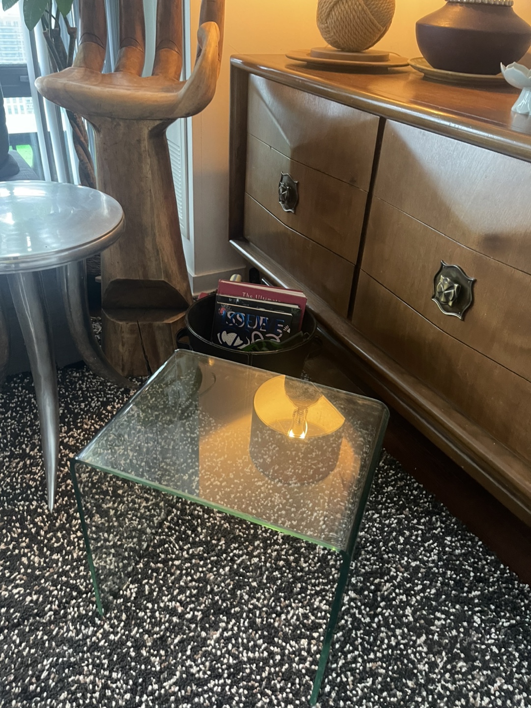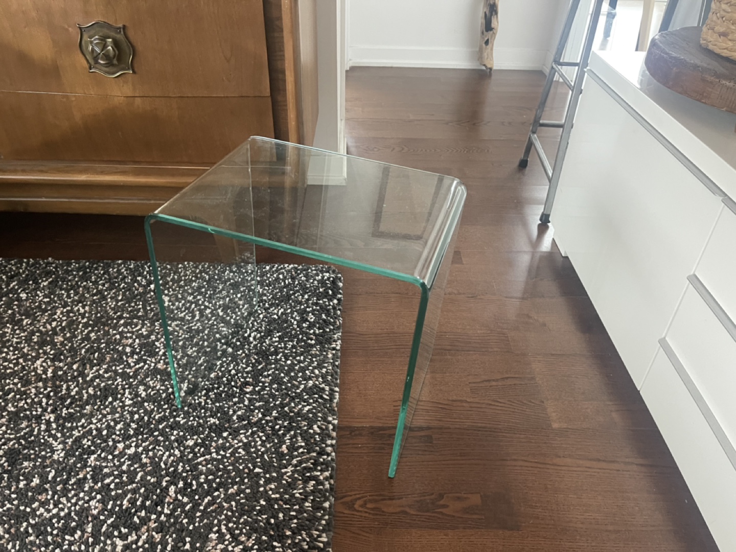 1 / 61 / 6Buy & SellClear Glass Side TableClear Glass Side Table$45Modern glass side table. Curved glass top and legs. Small and space-saving. Great for a small apartment or as an accent piece.WHERE TO MEETCheck LocationView MapSELLERverifiedTonyOld Toronto22714 reviews1 chats·2 favorites·31 viewsSEND CHAT TO SELLERHi Tony! I’m interested in your listing.Hi Tony! I’m interested in your listing.Get the Karrot app to chatSign In to chat