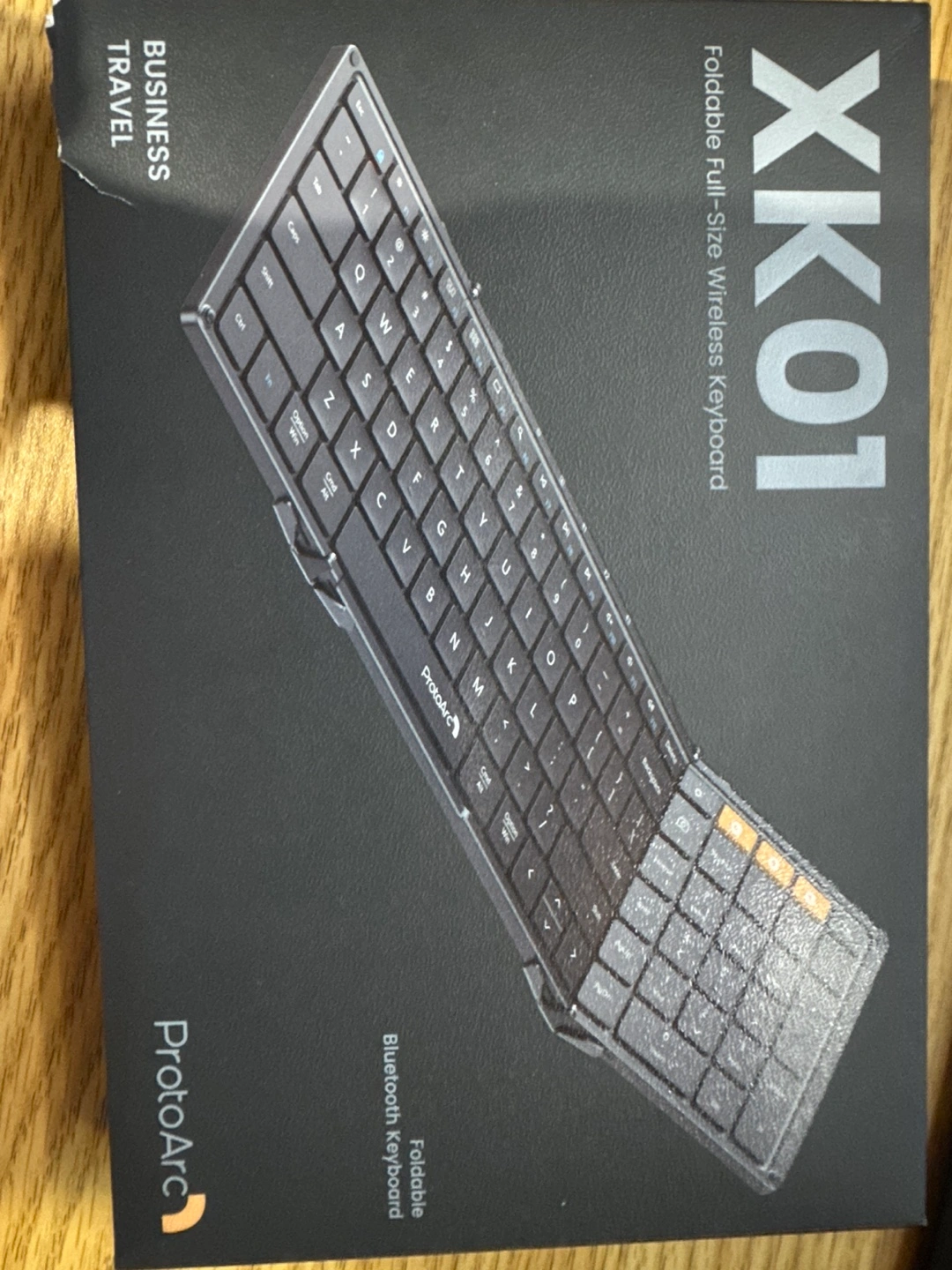 Foldable full-size wireless keyboard. Bluetooth connectivity. Includes user manual. Great for travel.